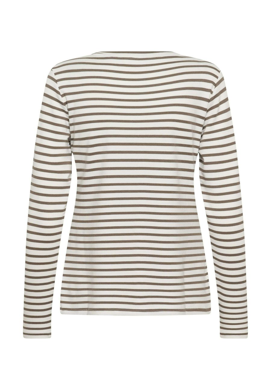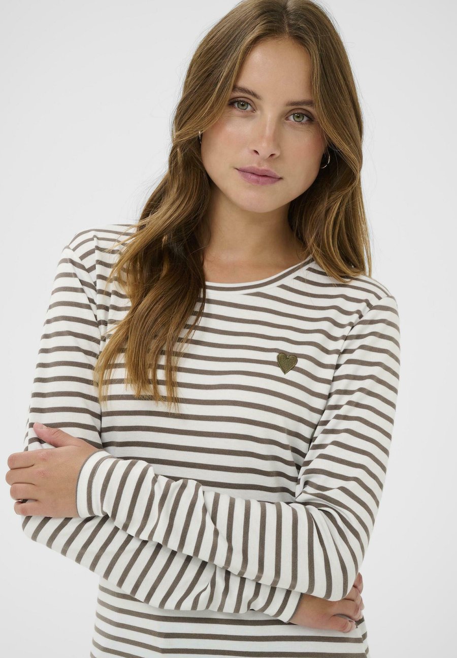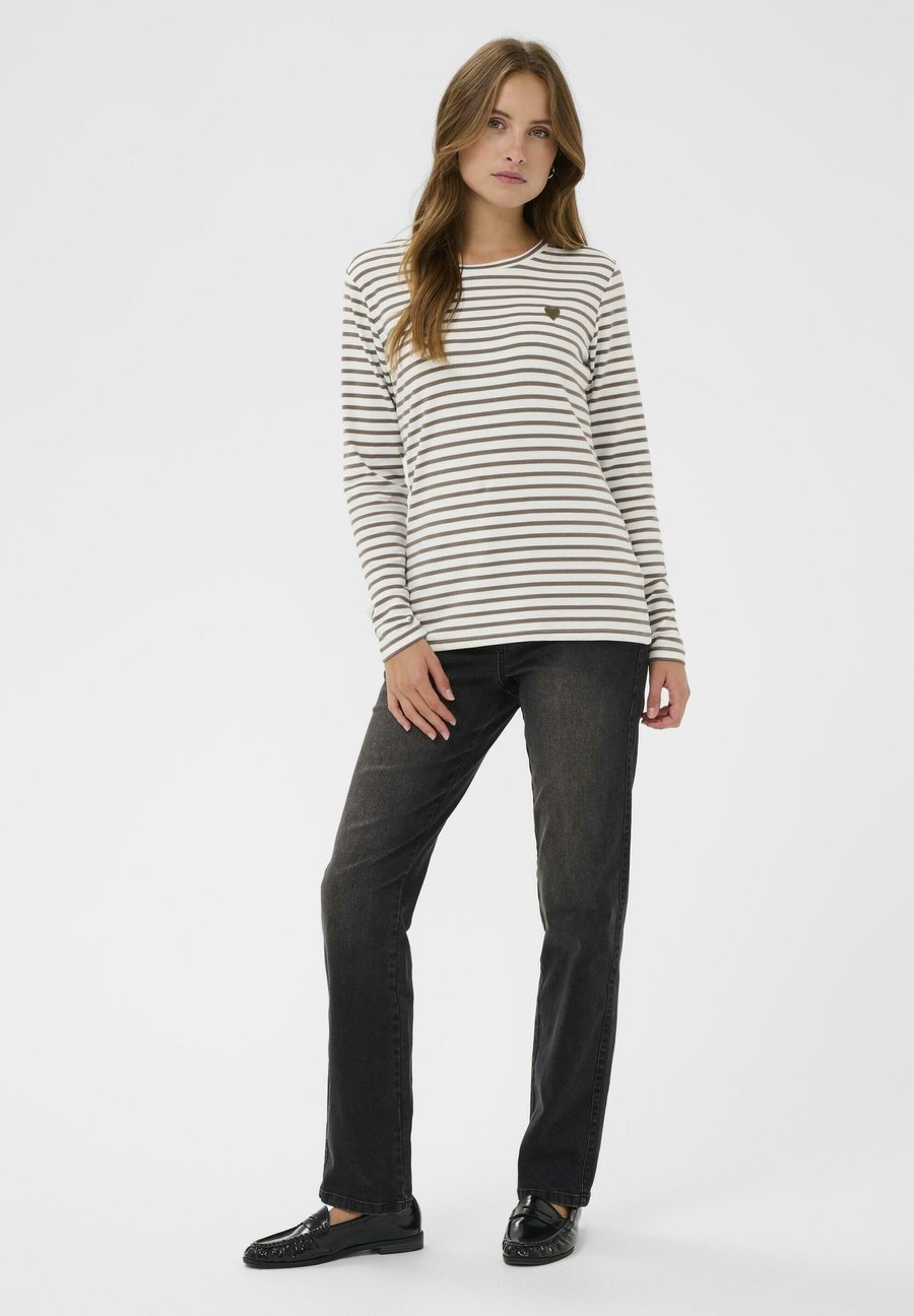 Эта женская полосатая блузка с длинными рукавами имеет стандартный крой, классический круглый вырез и удобный силуэт. Небольшая деталь на груди добавляет современный штрих к универсальному и стильному дизайну, идеально подходящему для многослойной одежды или самостоятельного ношения. Вырез горловины: КруглыйМатериал и уход
