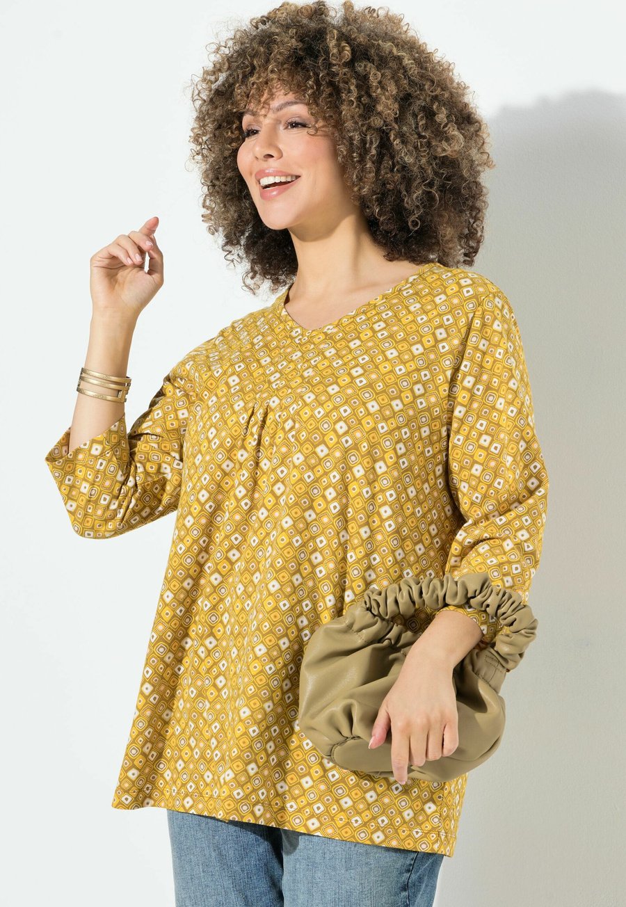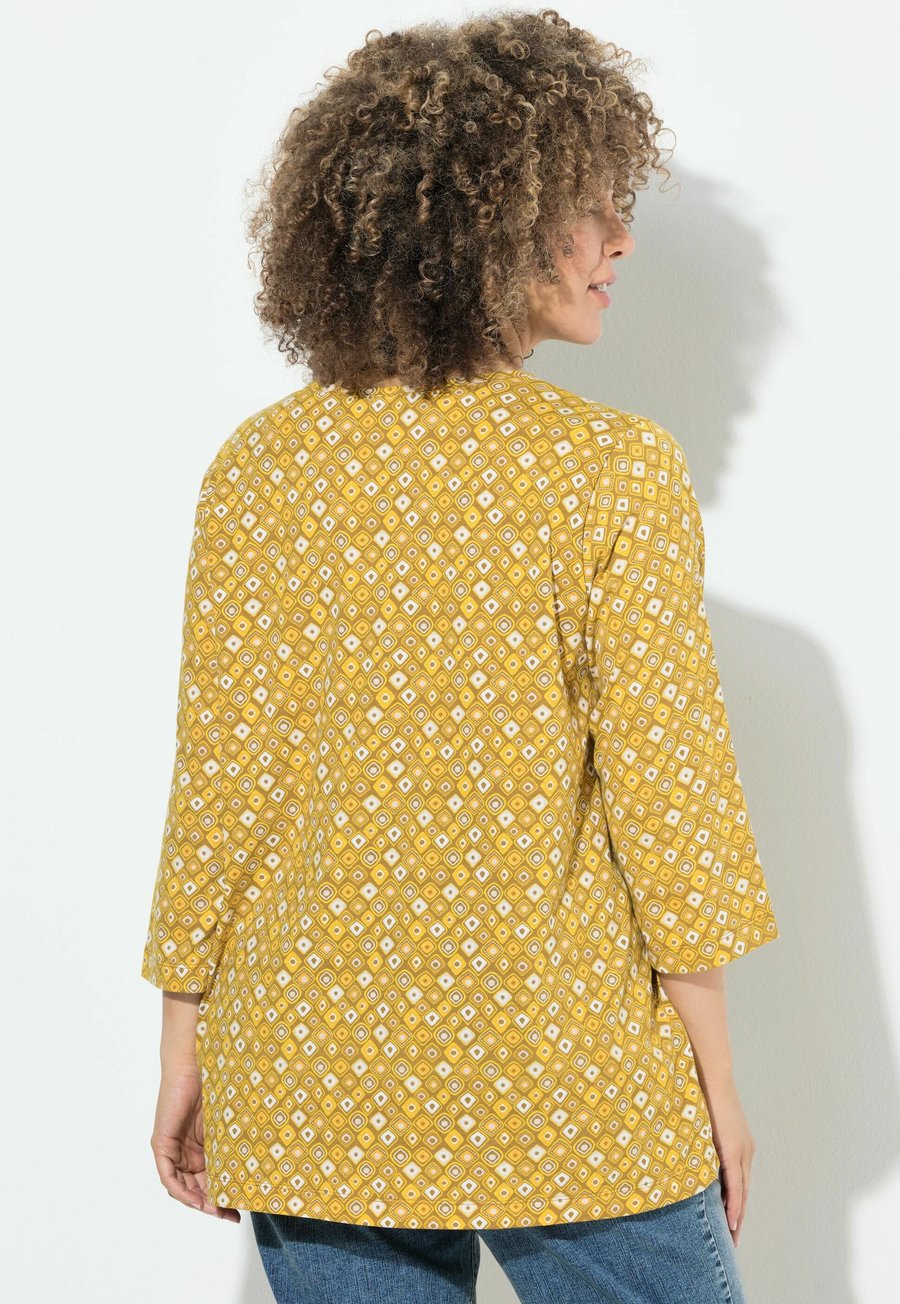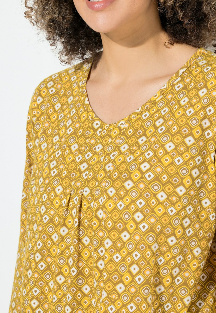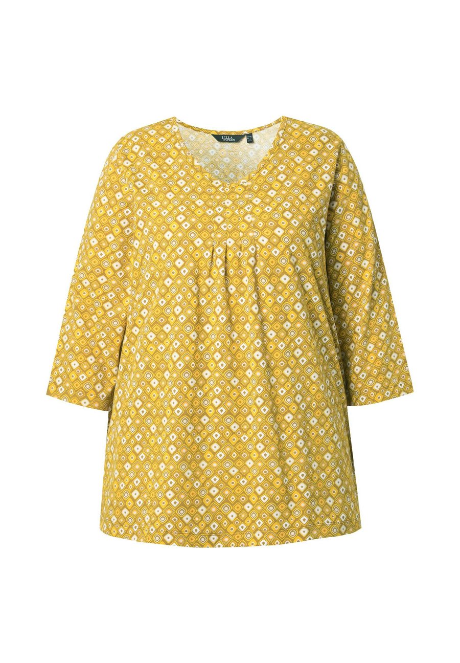 Топ Ulla Popken A-LINIE V-AUSSCHNITT 3/4-ARM, Mocha Brown/Yellow