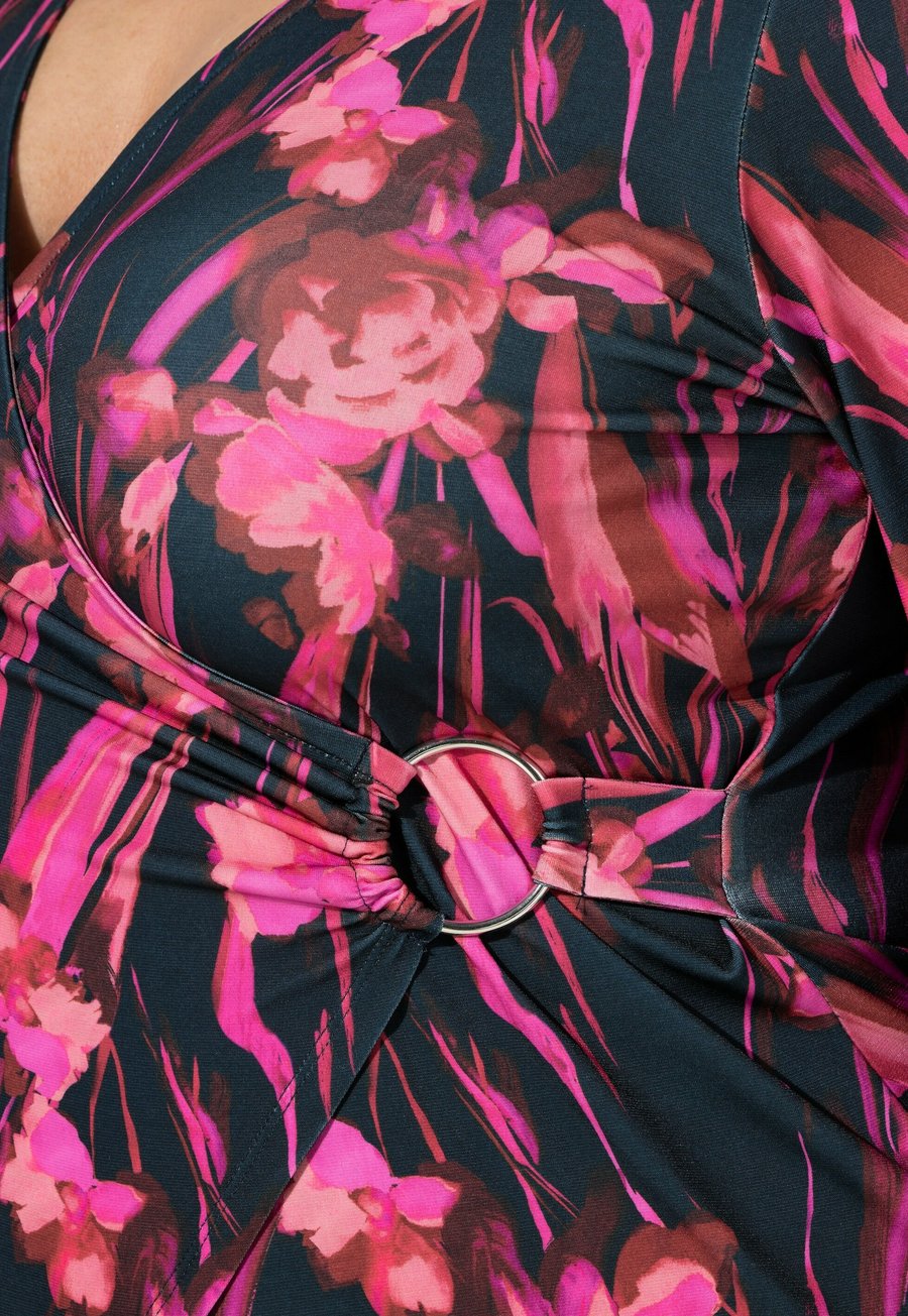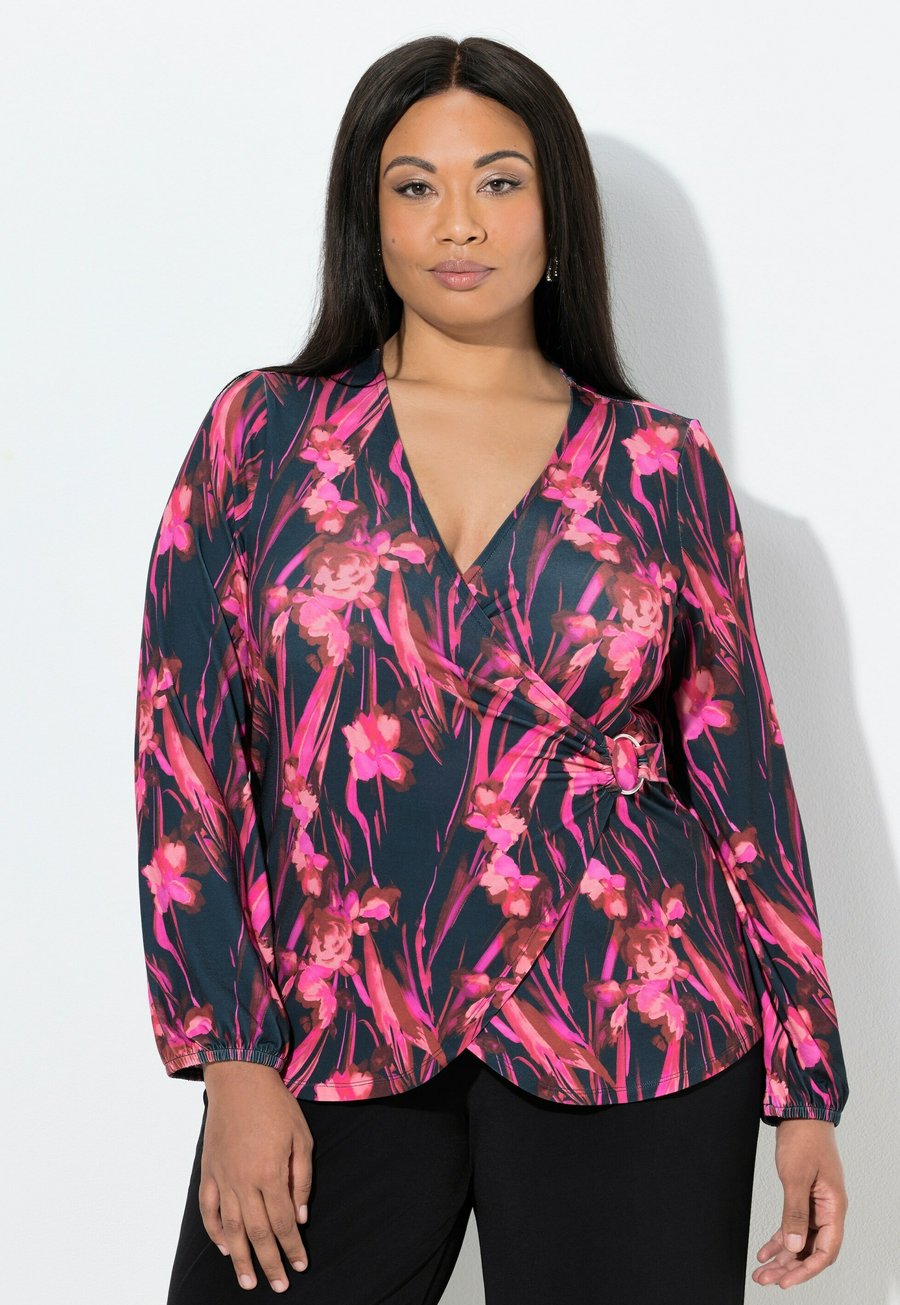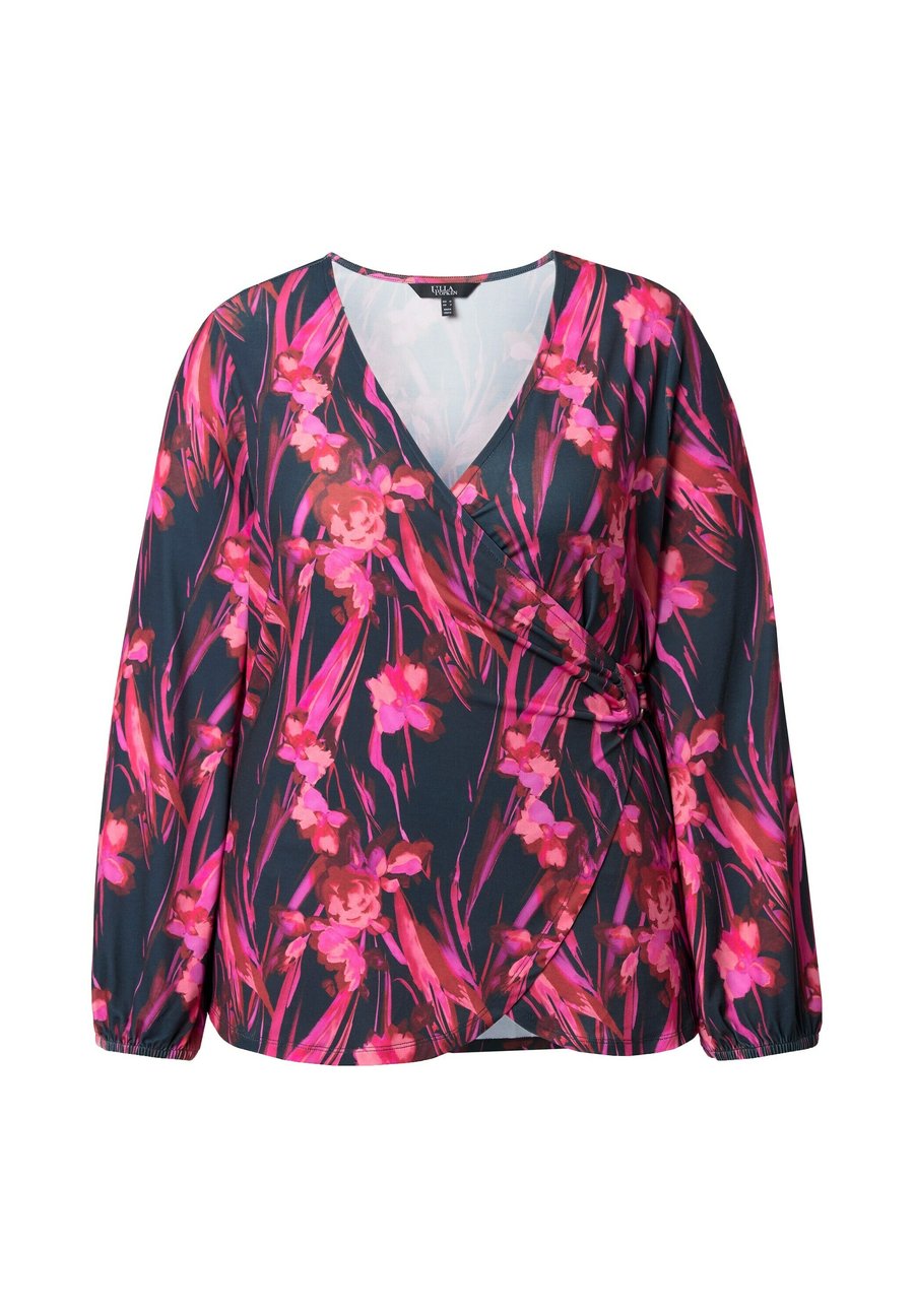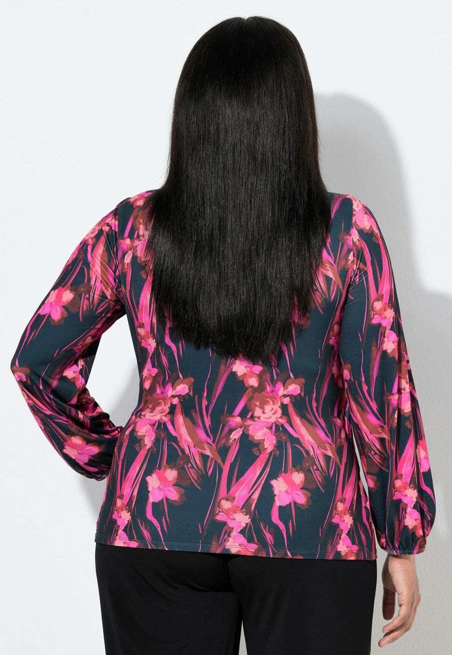 Топ Ulla Popken BLÜTEN OPTIK LANGARM, Marine/Dark Blue