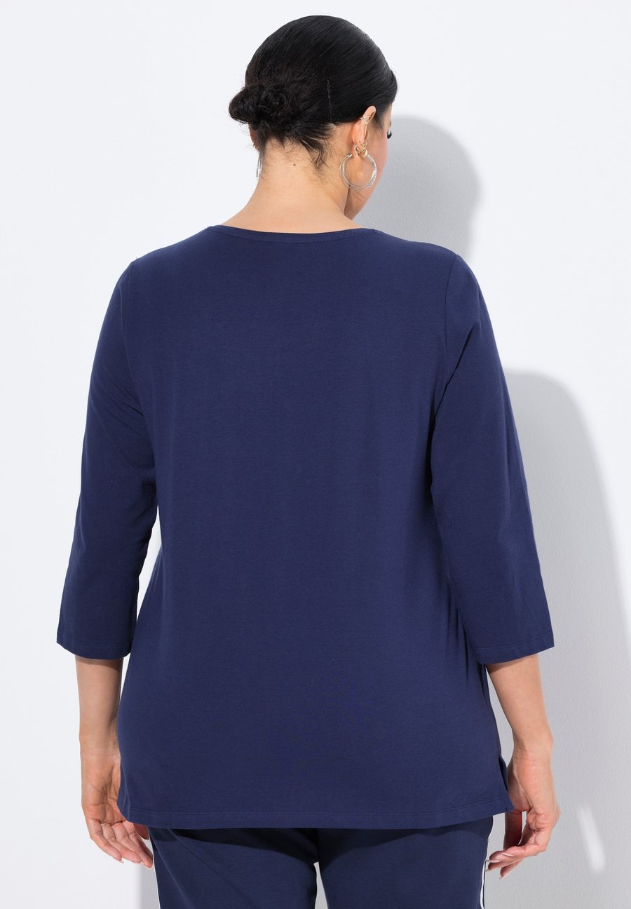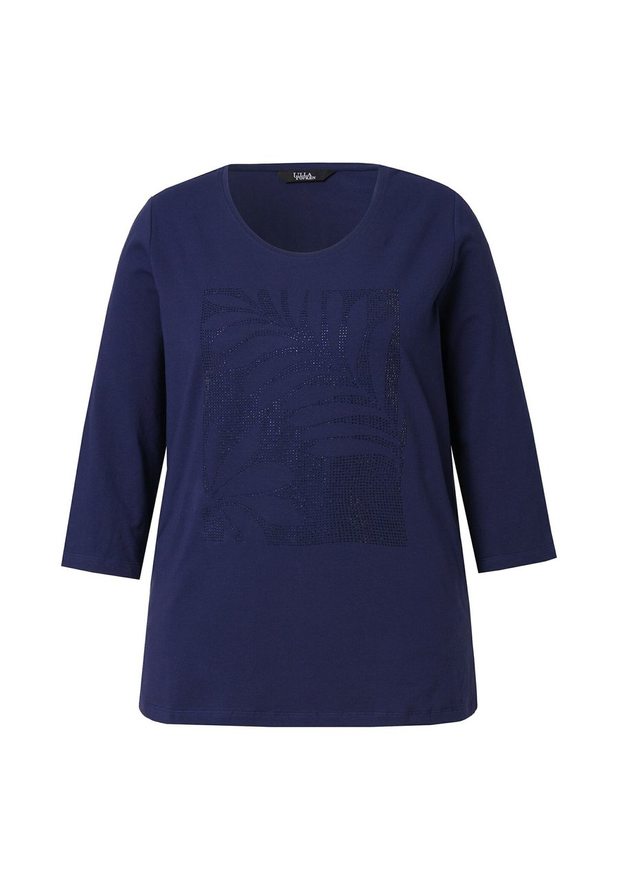 Топ Ulla Popken RHINESTONE LEAF 3/4 SLEEVE, Marine/Dark Blue