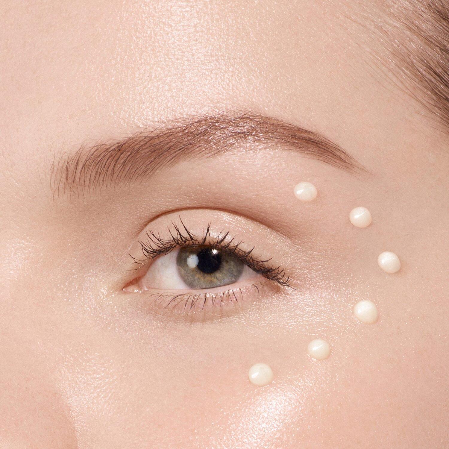 Шаг 2: Кончиками пальцев нанесите несколько маленьких капель крема на нежную кожу под глазами и на надбровную дугу.