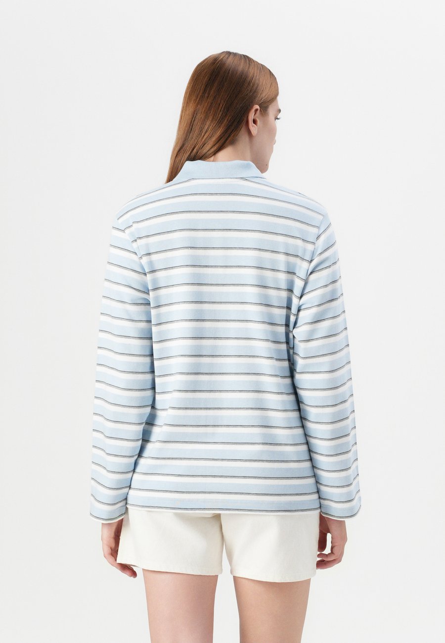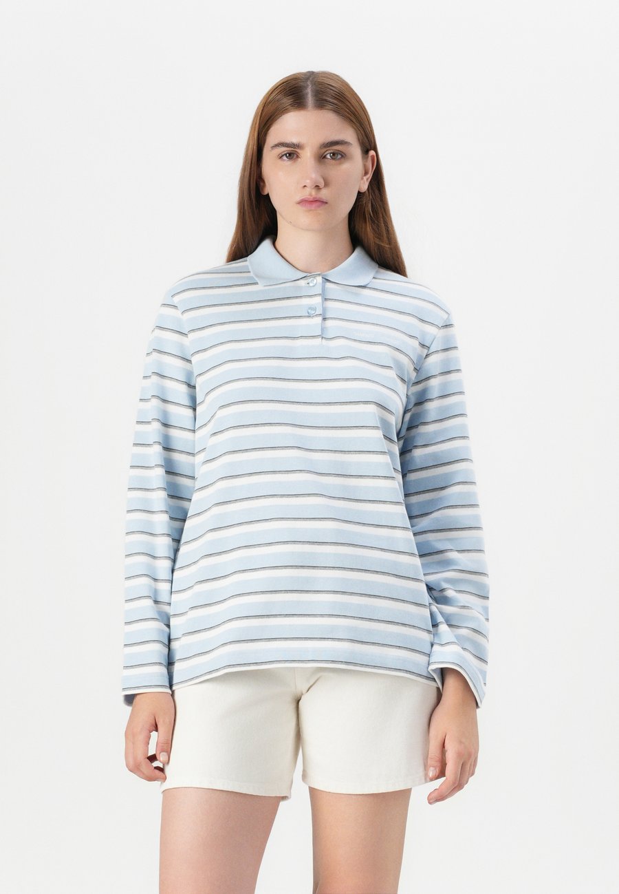 Небольшая этикетка на уровне груди. Воротник: рубашка поло.Материал и уход