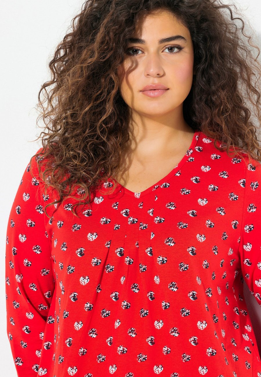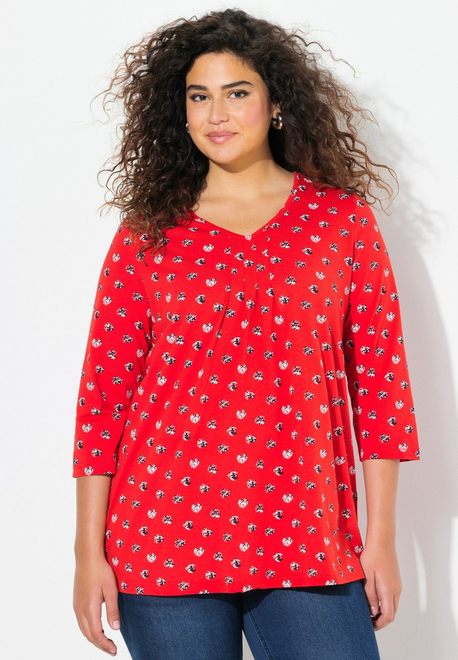 Топ Ulla Popken MINIMAL PRINT 3/4 SLEEVE, Neon Red/Red