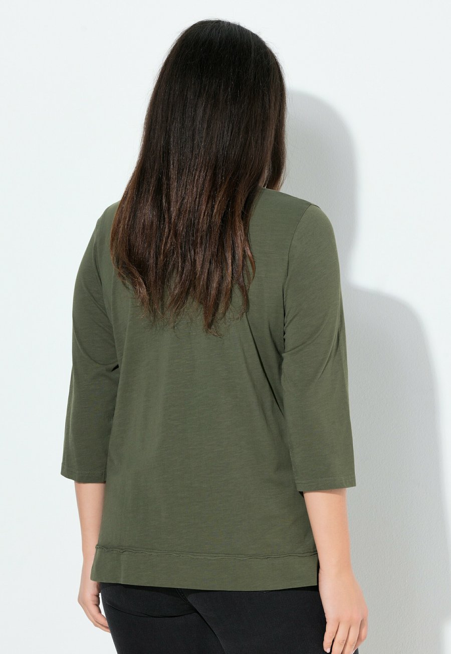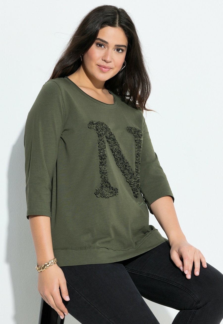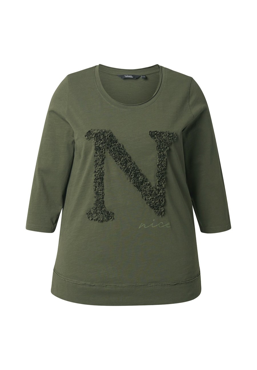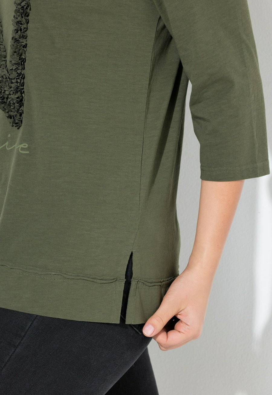 Топ Ulla Popken TEXTURED LETTERING 3/4 SLEEVE , Olive Grey/Olive