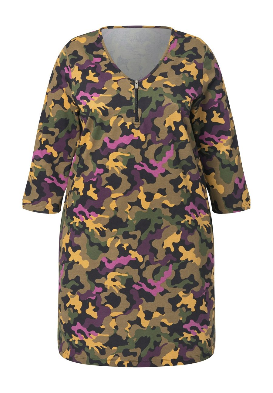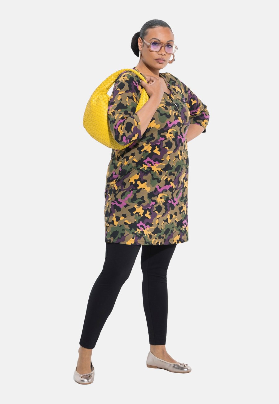 Топ Ulla Popken CAMO PRINT EMPIRE, Olive Grey/Olive