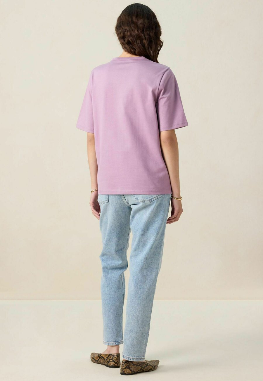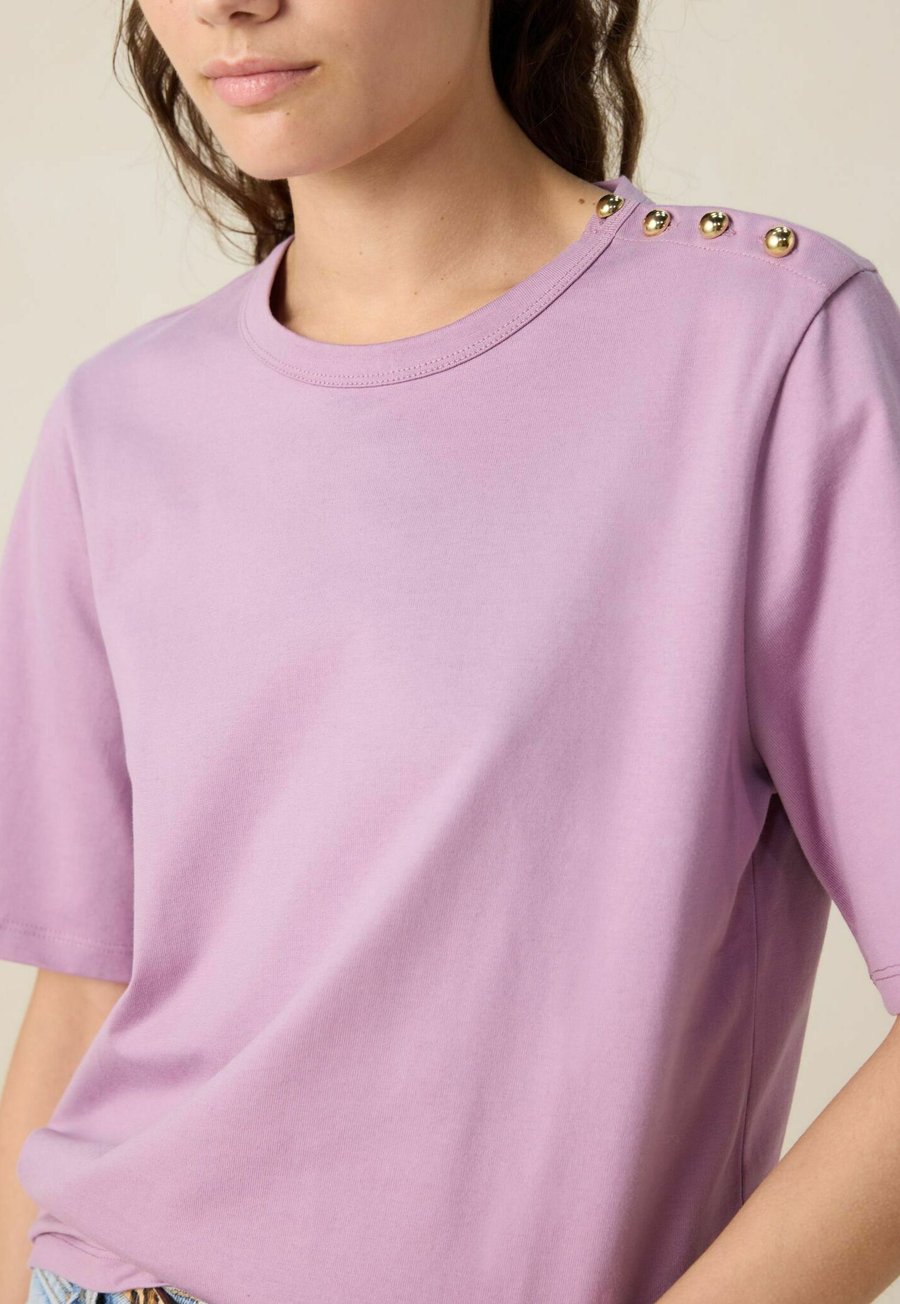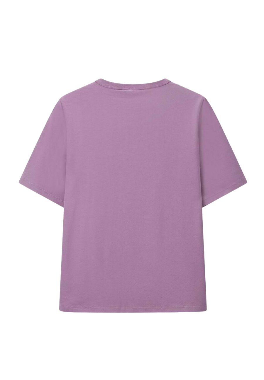 Футболка сиреневого цвета от бренда Sissy-Boy. Футболка имеет круглый вырез, стандартный крой и пуговицы на одном плече. Материал: 100% хлопок. Вырез: Круглый.Материал и уход
