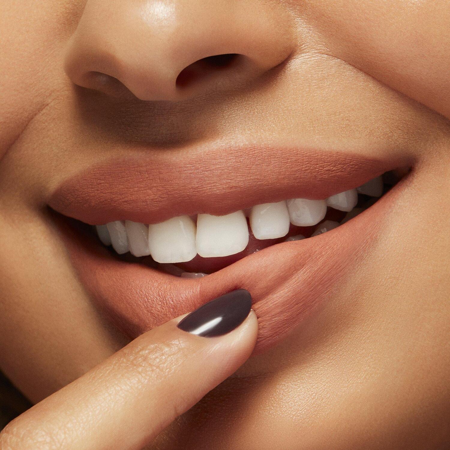 Нанесите помаду на чистые губы и подождите несколько минут, пока формула застынет.
