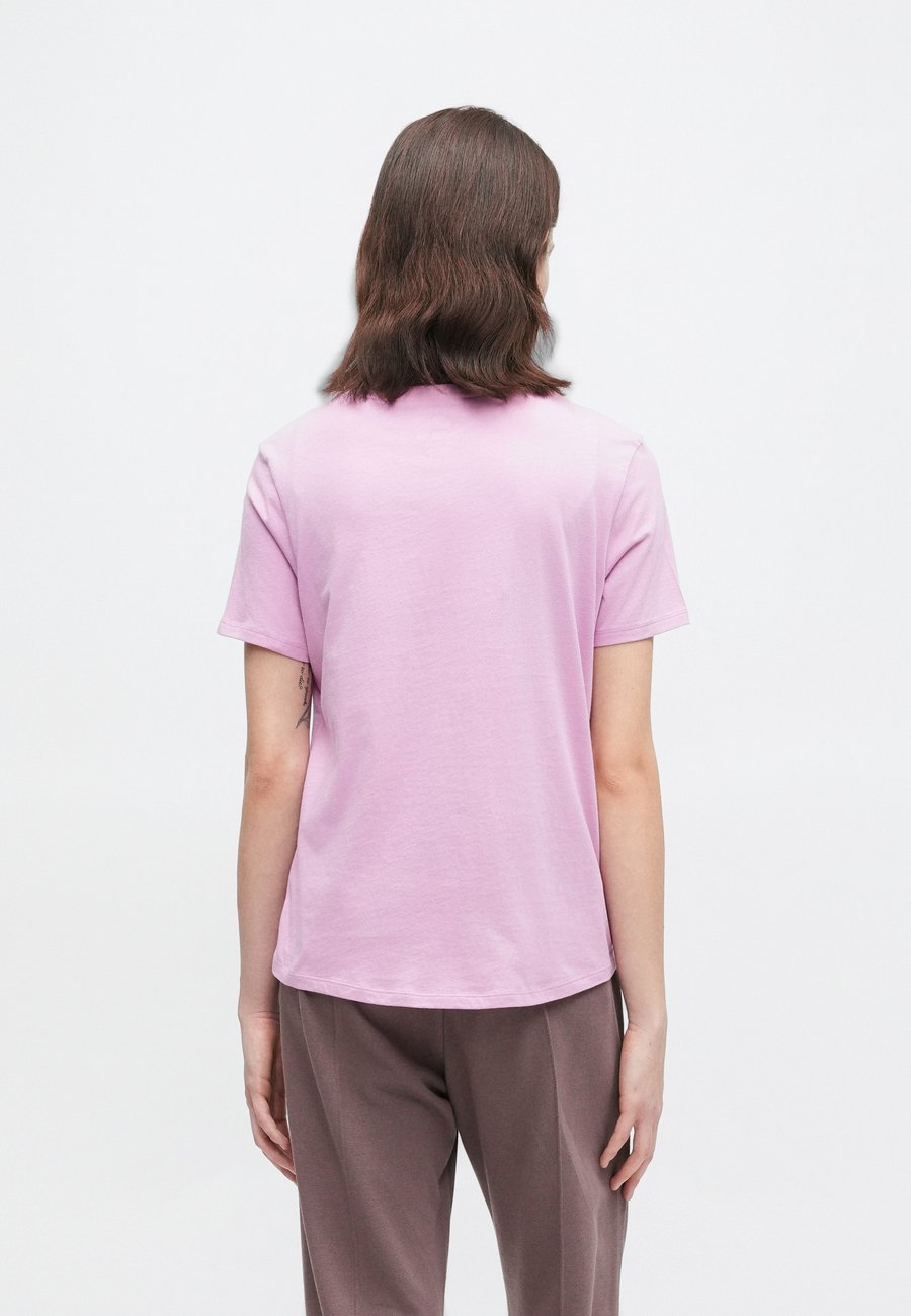 Небольшая этикетка-флажок на уровне груди. Вырез горловины: круглый.Материал и уход