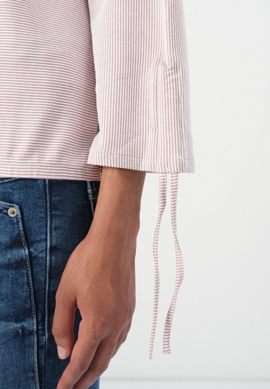 Свободный крой, длинные рукава с декоративным швом спереди, слегка приспущенными плечевыми швами и эластичным поясом по низу. Шнуровка по низу рукава позволяет собирать и фиксировать рукава. Изготовлено из фактурной жаккардовой ткани. Вырез горловины: ЛодочкаМатериал и уход