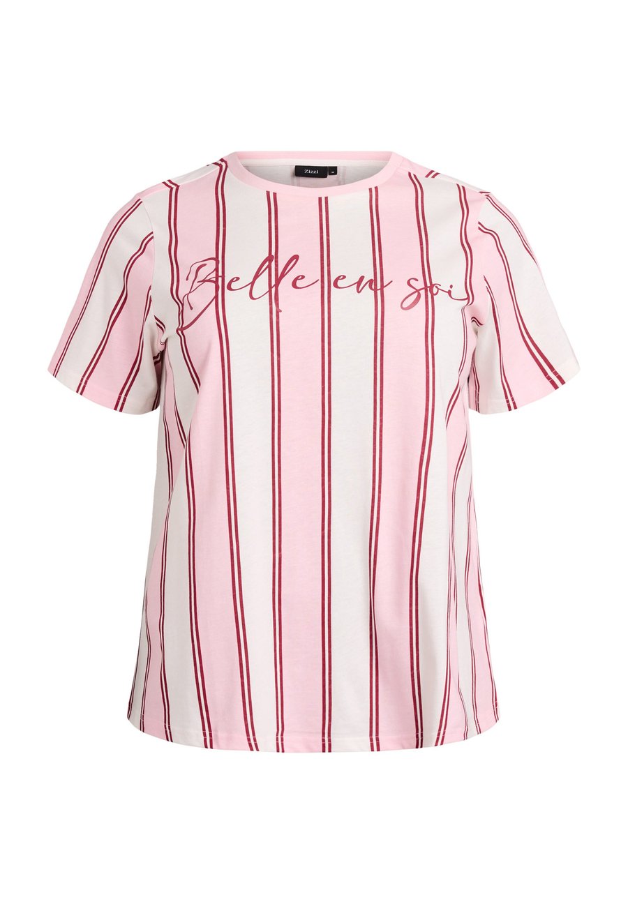 Футболка Zizzi Print T-shirt, Rosa Stripe/Light Red