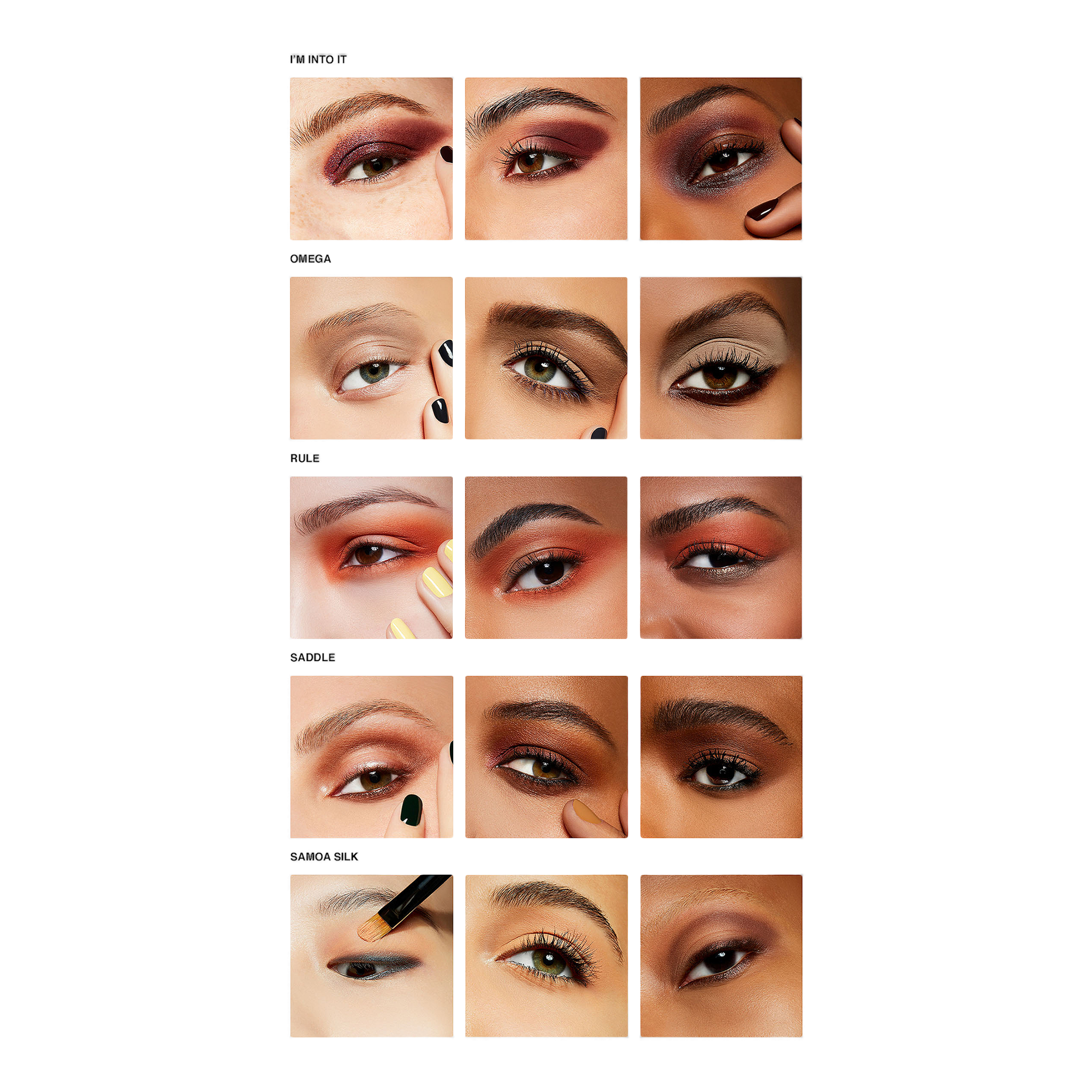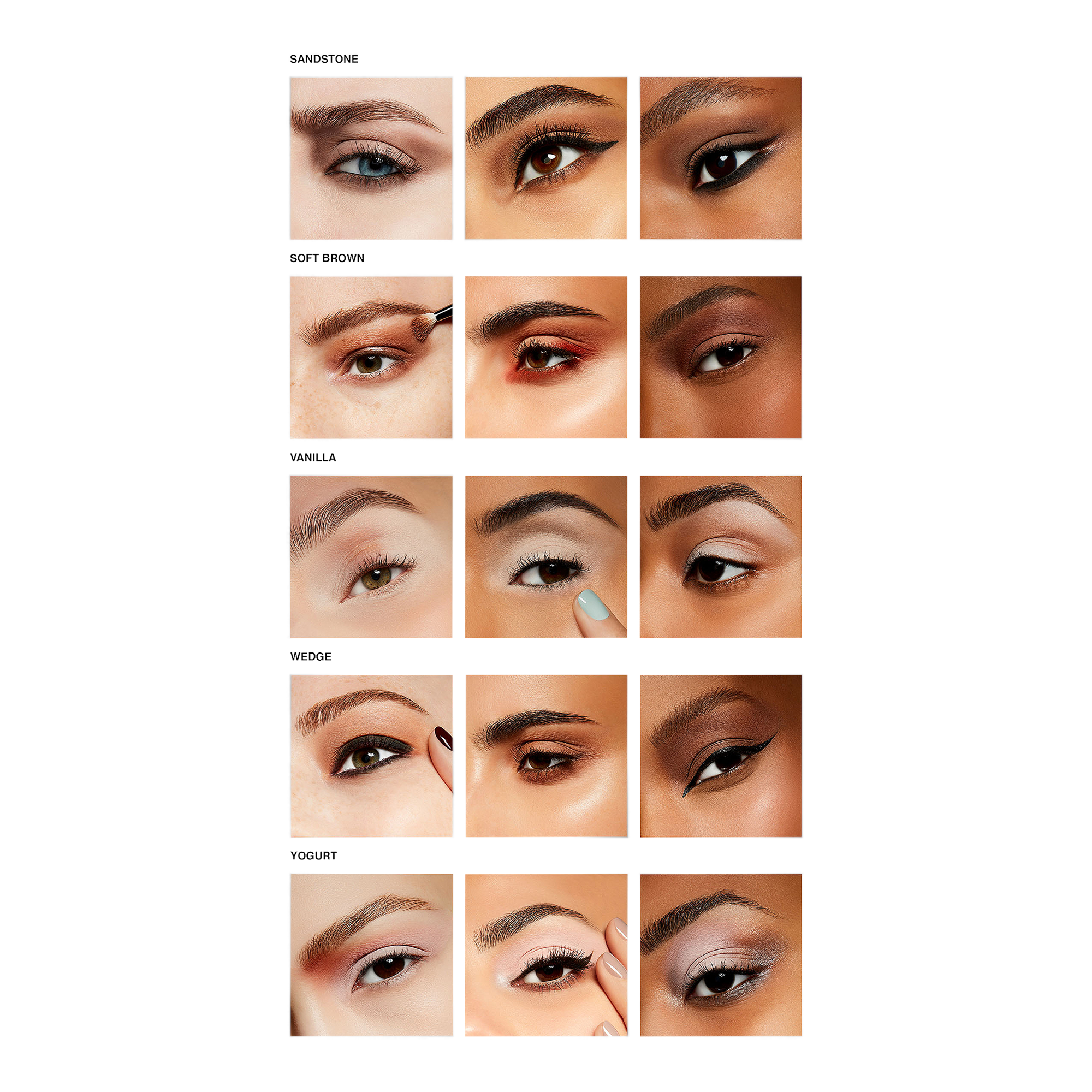 Нанесите тени на область вокруг глаз (веко и складку века) кистью, используя похлопывающие движения для наращивания цвета и создания более выразительного образа.Ингредиенты