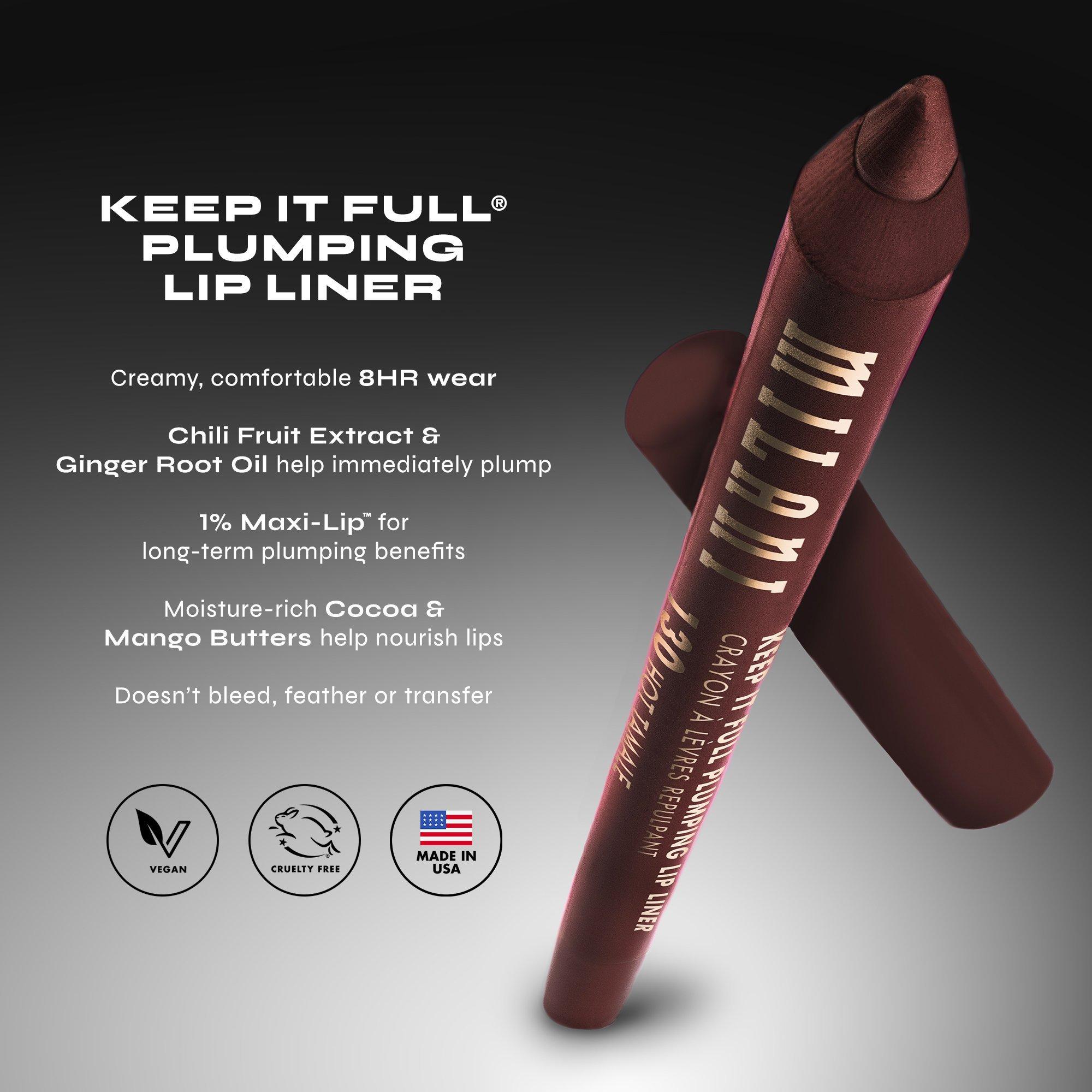 Используйте карандаш для губ Keep It Full Plumping Lip Liner, чтобы обвести внешний край губ. Для более полных губ слегка обведите контур верхней губы и центр нижней губы. Заполните губы вашим любимым оттенком помады Milani.Ингредиенты