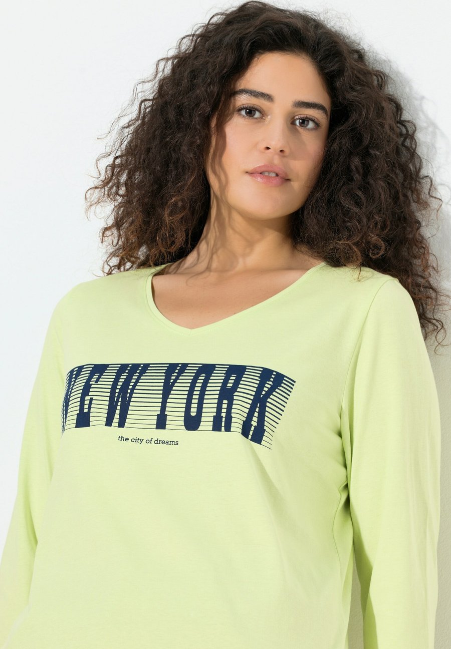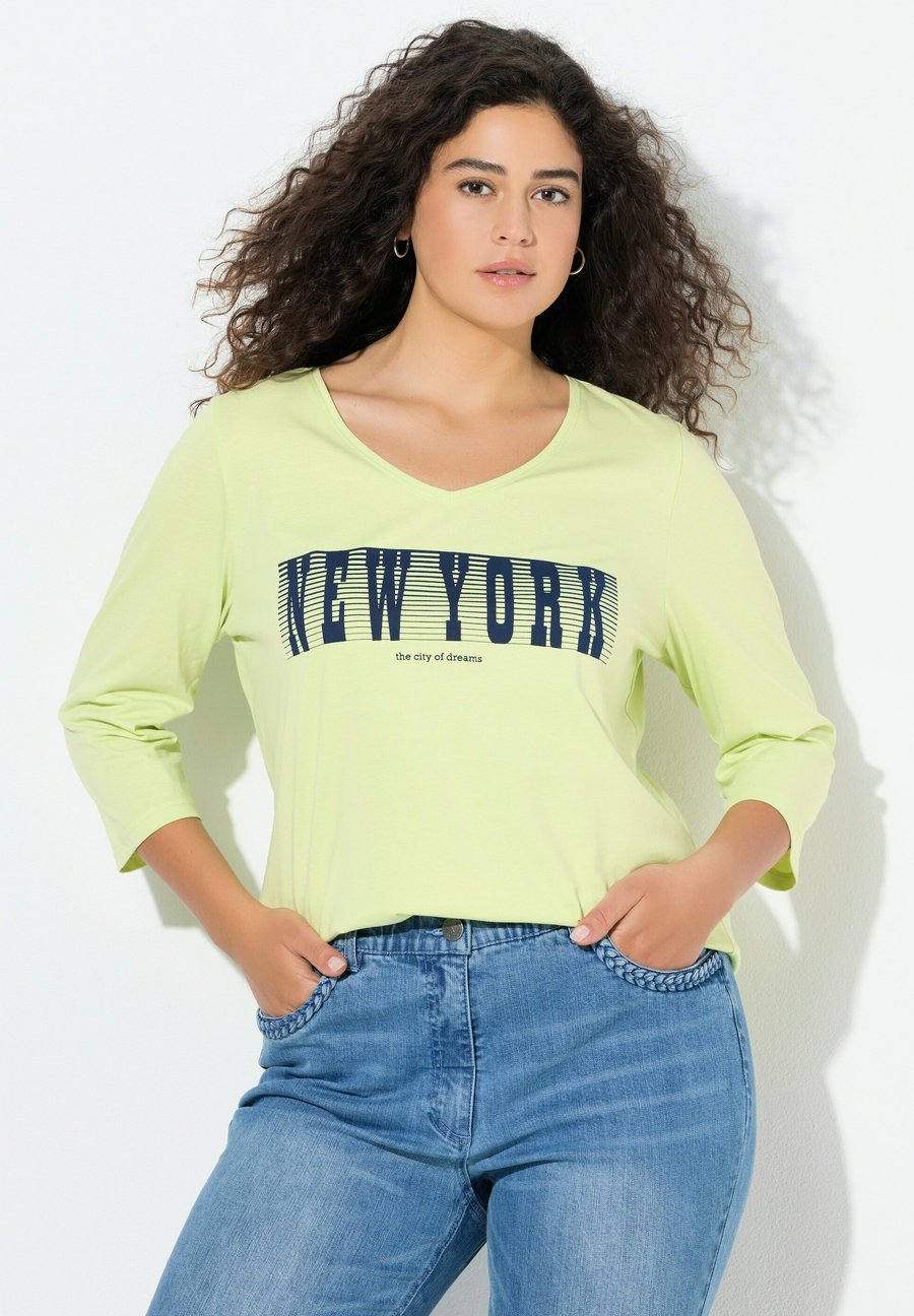 Топ Ulla Popken Long sleeved top, Lime Green/Light Green