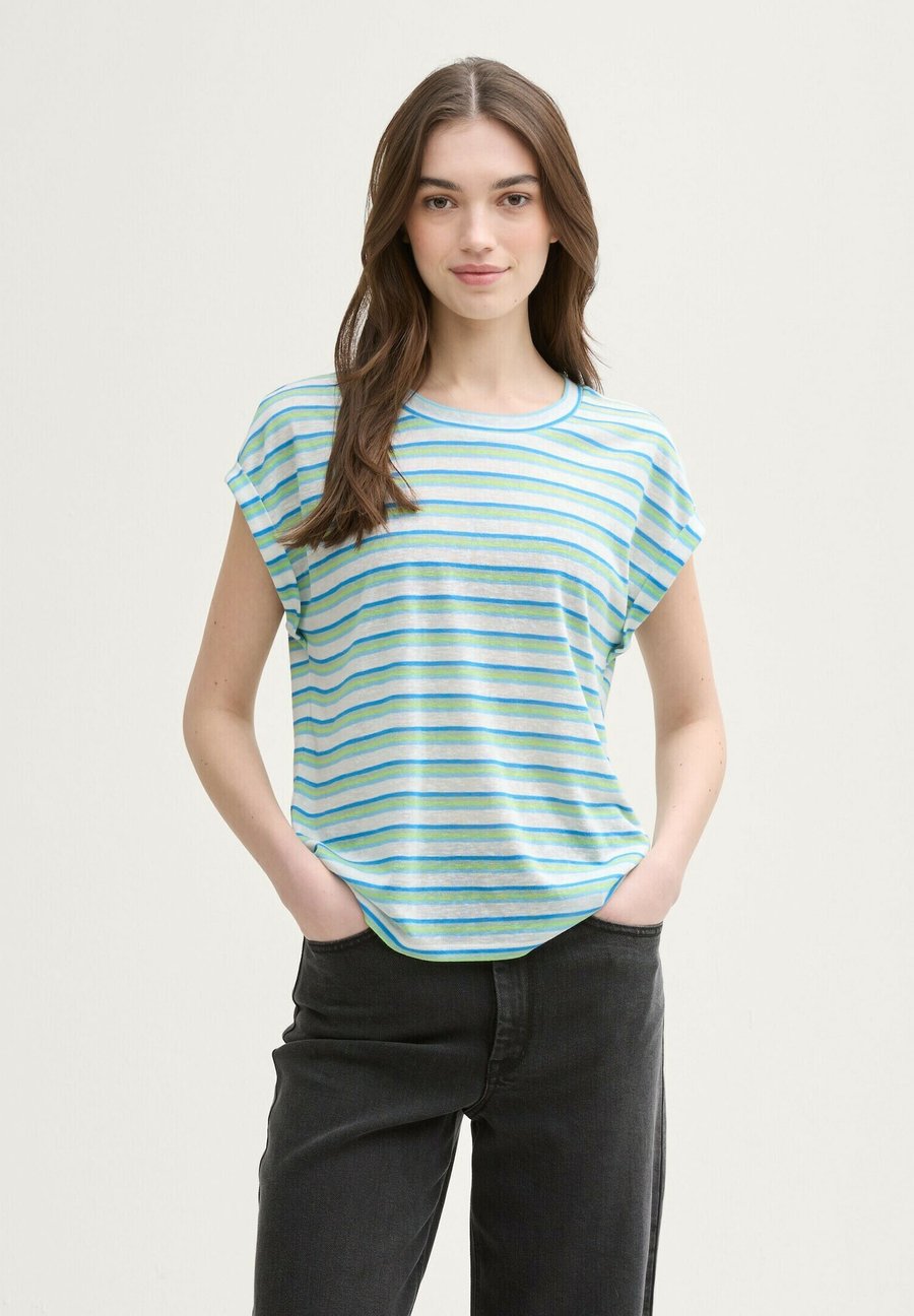Свободная полосатая футболка из трикотажной ткани. Вырез горловины: круглый.Материал и уход
