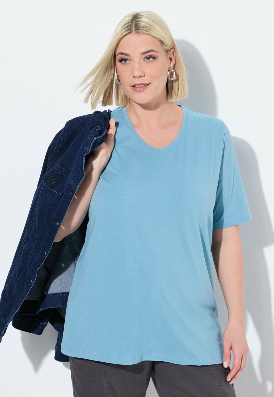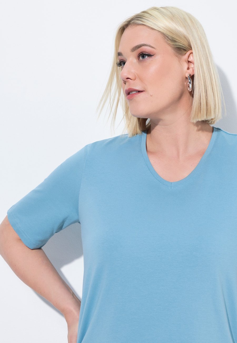 Футболка Ulla Popken V-AUSSCHNITT HALBARM, Light Teal/Light Blue
