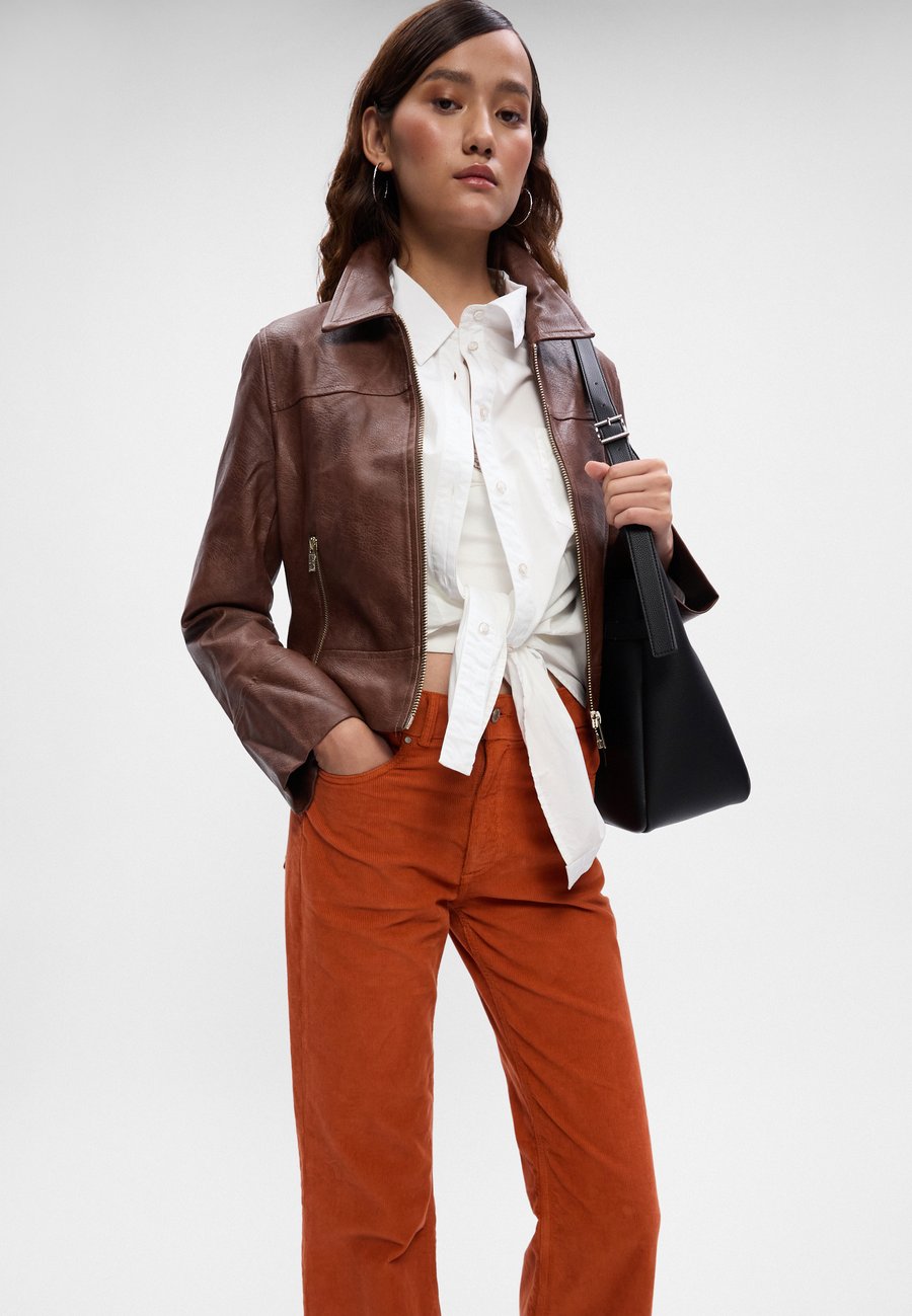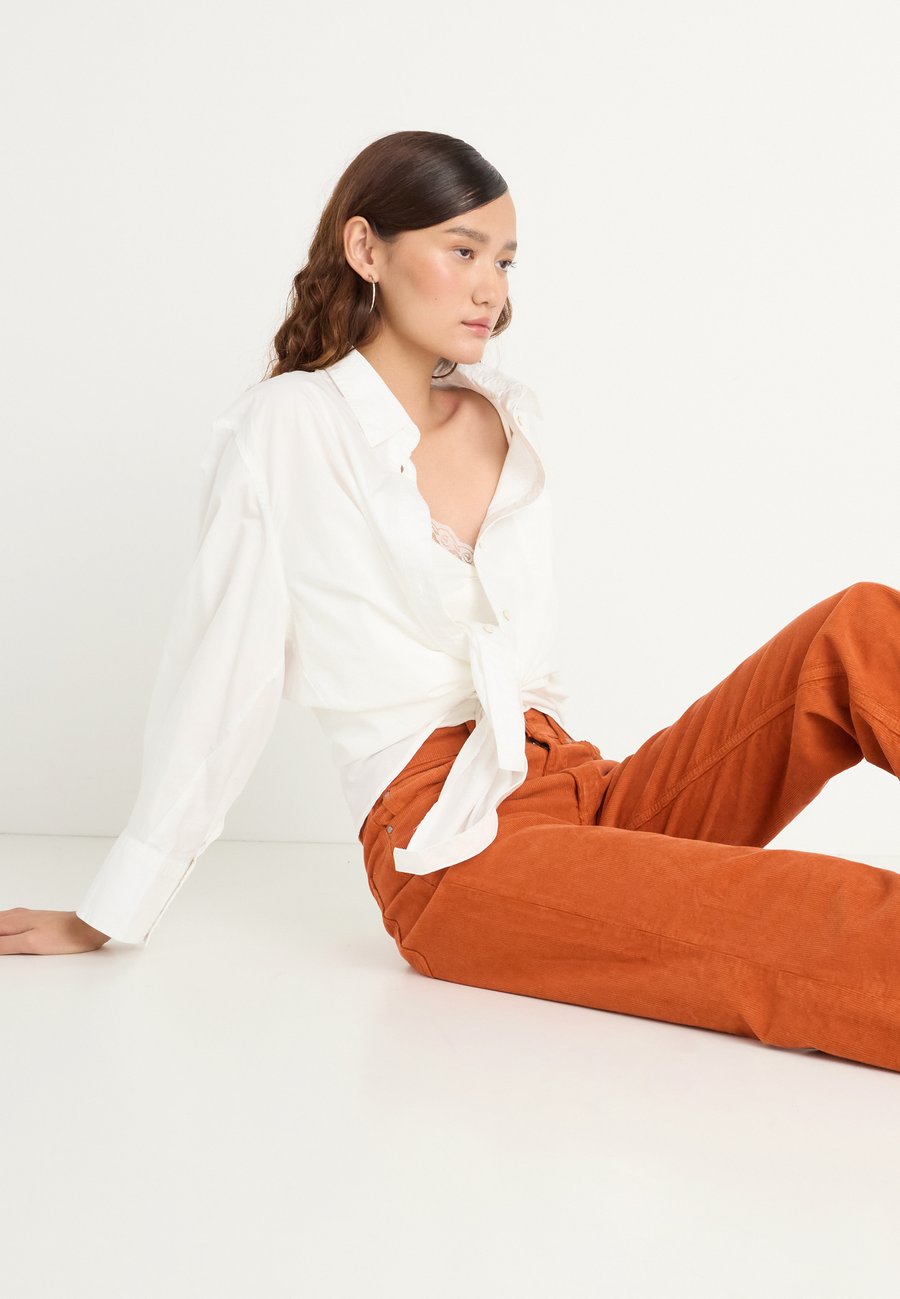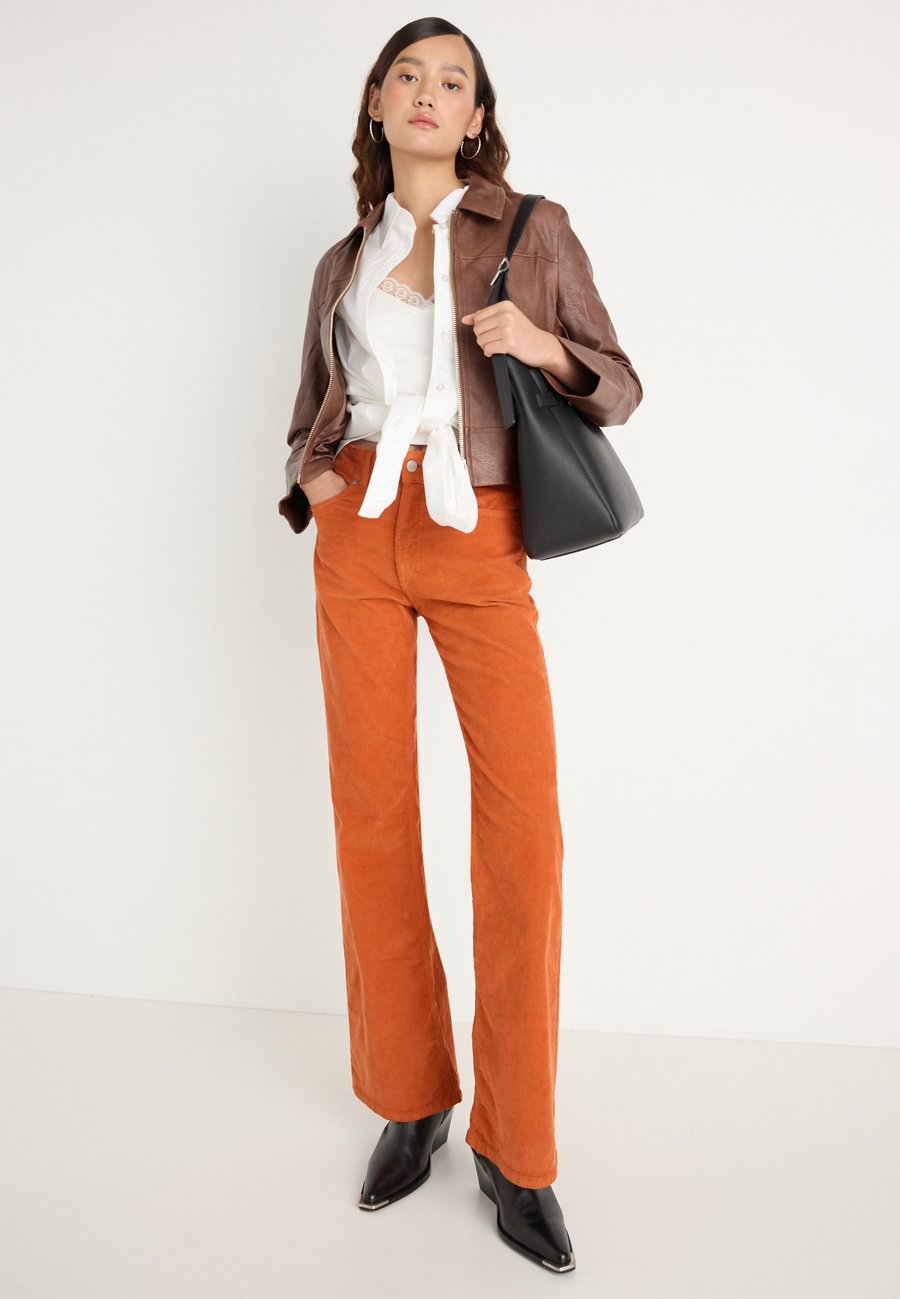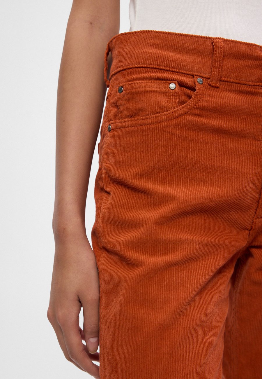 Пятикарманный фасон. Нашивка из натуральной кожи на поясе. Высота посадки: высокая.Материал и уход