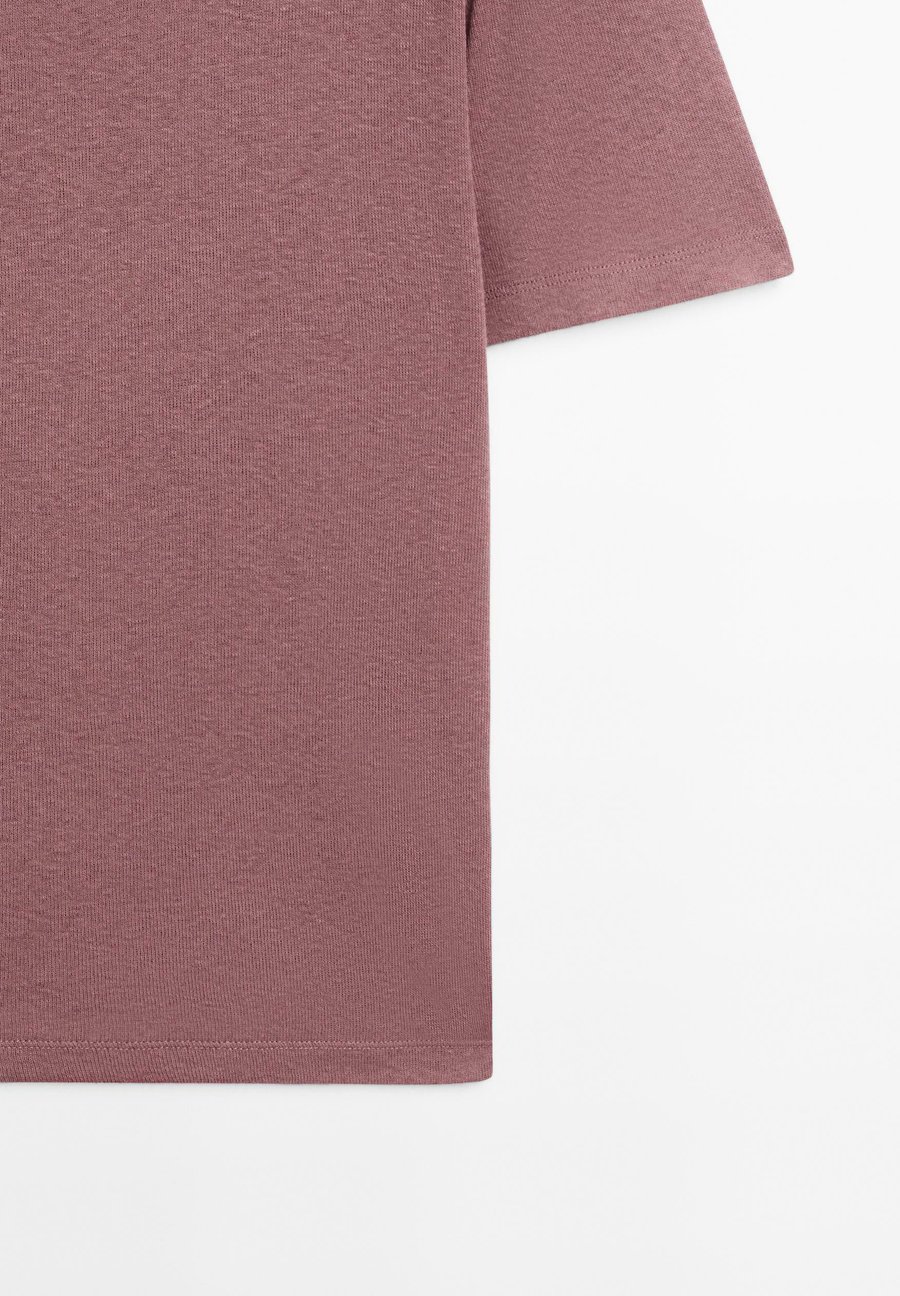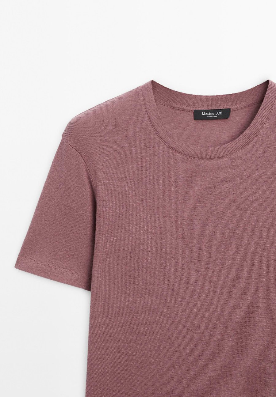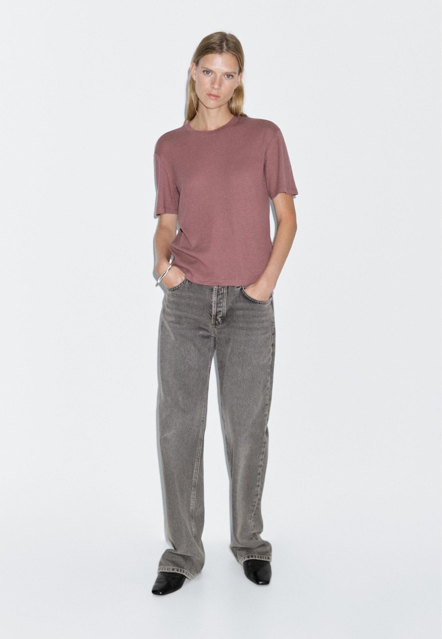 Широкий и свободный силуэт, не приталенный. Короткие рукава. Ребристая отделка. Круглый вырез. Футболка из смесовой хлопковой ткани. Вырез горловины: круглый.Материал и уход