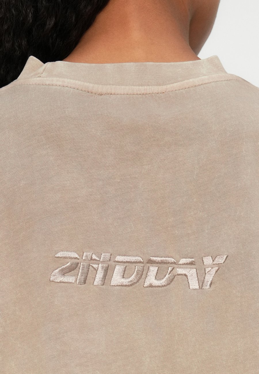 Небольшая этикетка-флажок на уровне груди. Вырез горловины: круглый.Материал и уход