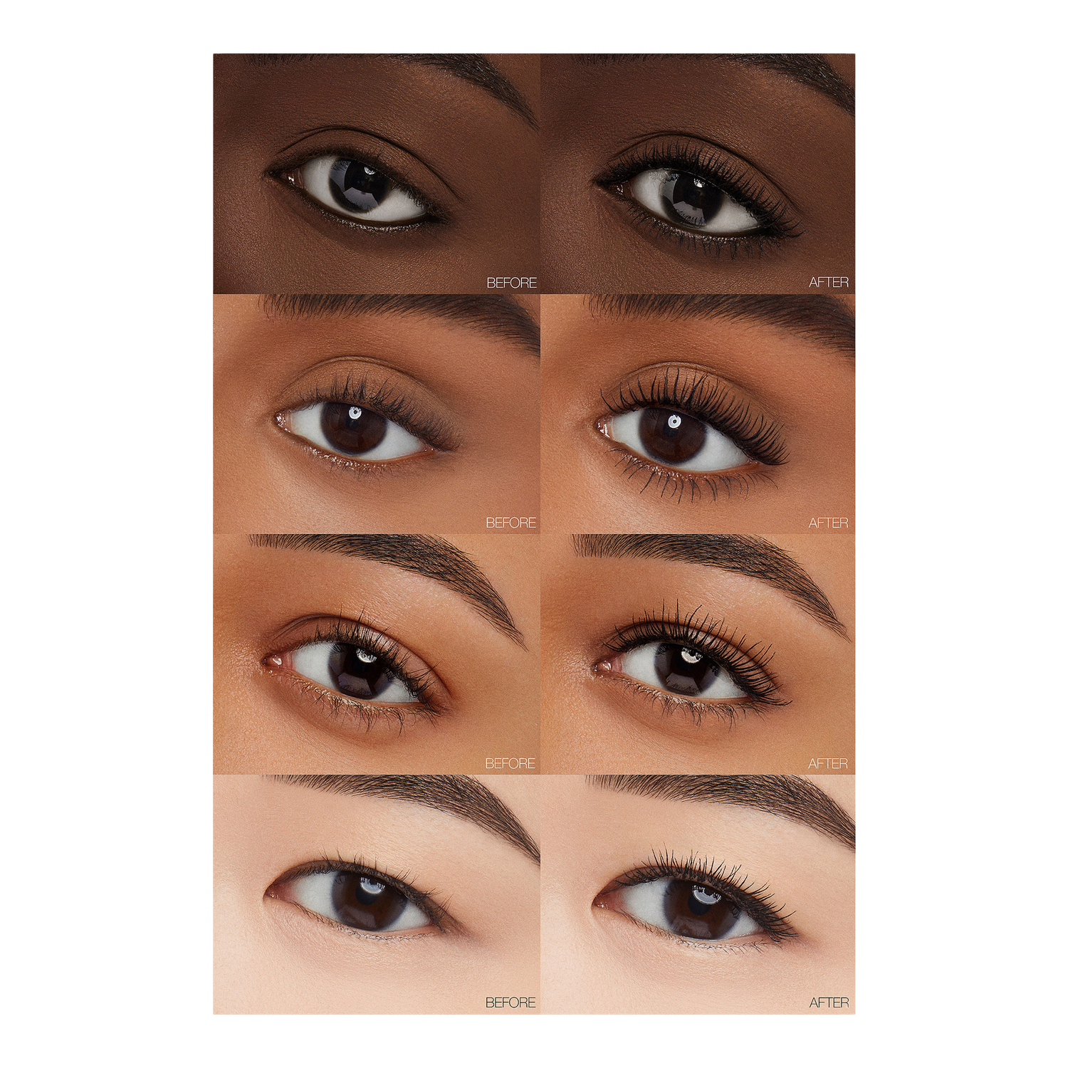 Для создания драматического объема начните с нанесения туши на верхние и нижние ресницы, используя кисточку для равномерного распределения. Далее сосредоточьте нанесение на корнях и внешних ресницах.Ингредиенты