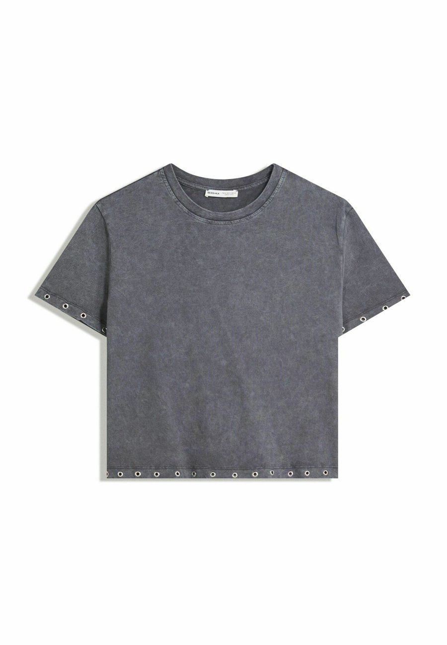 Футболка Bershka SHORT SLEEVE WITH EYELETS, Grey