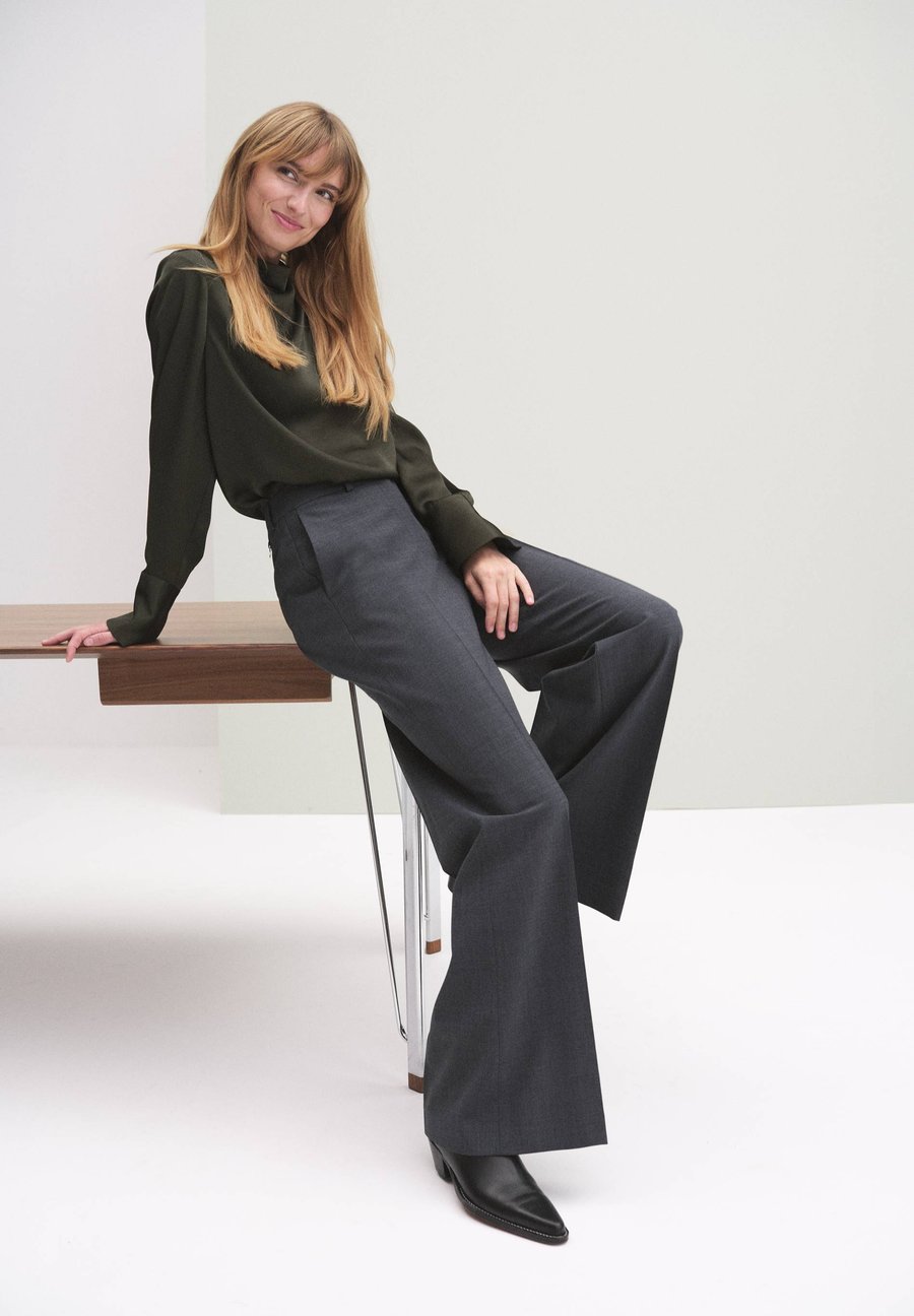 Брюки Elise от Stockh lm Studio - это классические брюки прямого, слегка расклешенного кроя. Они имеют среднюю посадку на талии, отвороты спереди и сзади, а также незаметные прорезные карманы сзади. Изготовлены из мягкой шерстяной смеси с легкой эластичностью для обеспечения формы и комфорта. Оснащены боковыми карманами, петлями для ремня и потайной застежкой на молнию, крючок и петлю. Стильные и универсальные брюки, идеально подходящие для ношения с блейзером или трикотажем для создания расслабленного, но элегантного образа. Посадка: НормальнаяМатериал и уход