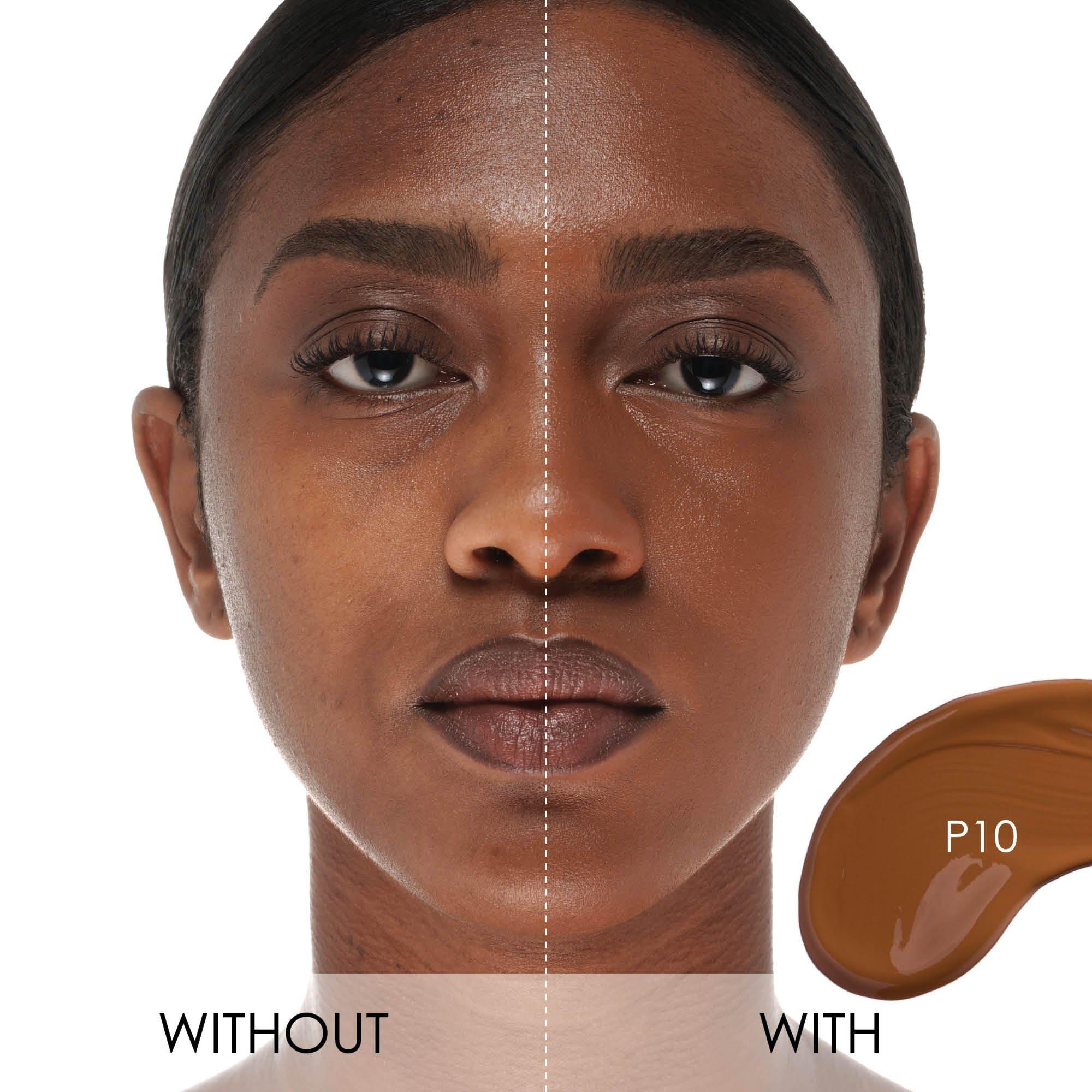 Shade P10: Water (Aqua). Iron Oxides (CI 77492). Iron Oxides (CI 77491). Bis-Stearyl Dimethicone. Caprylyl Methicone. Isohexadecane . Iron Oxides (CI 77499). Cetyl PEG/PPG-10/1 Dimethicone. Glycerin. Isononyl Isononanoate. Diphenyl Dimethicone. Titanium Dioxide (CI 77891). Polyglyceryl-4 Isostearate. Trimethylsiloxysilicate. C30-45 Alkyl Dimethicone. Stearyl Dimethicone. Butylene Glycol . Alumina . Boron Nitride. Sodium Potassium Aluminum Silicate. Phenoxyethanol . Sodium Chloride . Disteardimonium Hectorite. Potassium Sorbate. Sodium Dehydroacetate. Caprylic/Capric Triglyceride. Triethoxycaprylylsilane. Tocopheryl Acetate. Silica Dimethyl Silylate. C20-24 Olefin. Silica . Propylene Carbonate. Fragrance (Parfum). Vitis Vinifera (Grape) Fruit Extract \\[Vitis Vinifera Fruit Extract\\]. Portulaca Grandiflora Extract. Capsicum Annuum Extract. Pentaerythrityl Tetra-Di-T-Butyl Hydroxyhydrocinnamate.