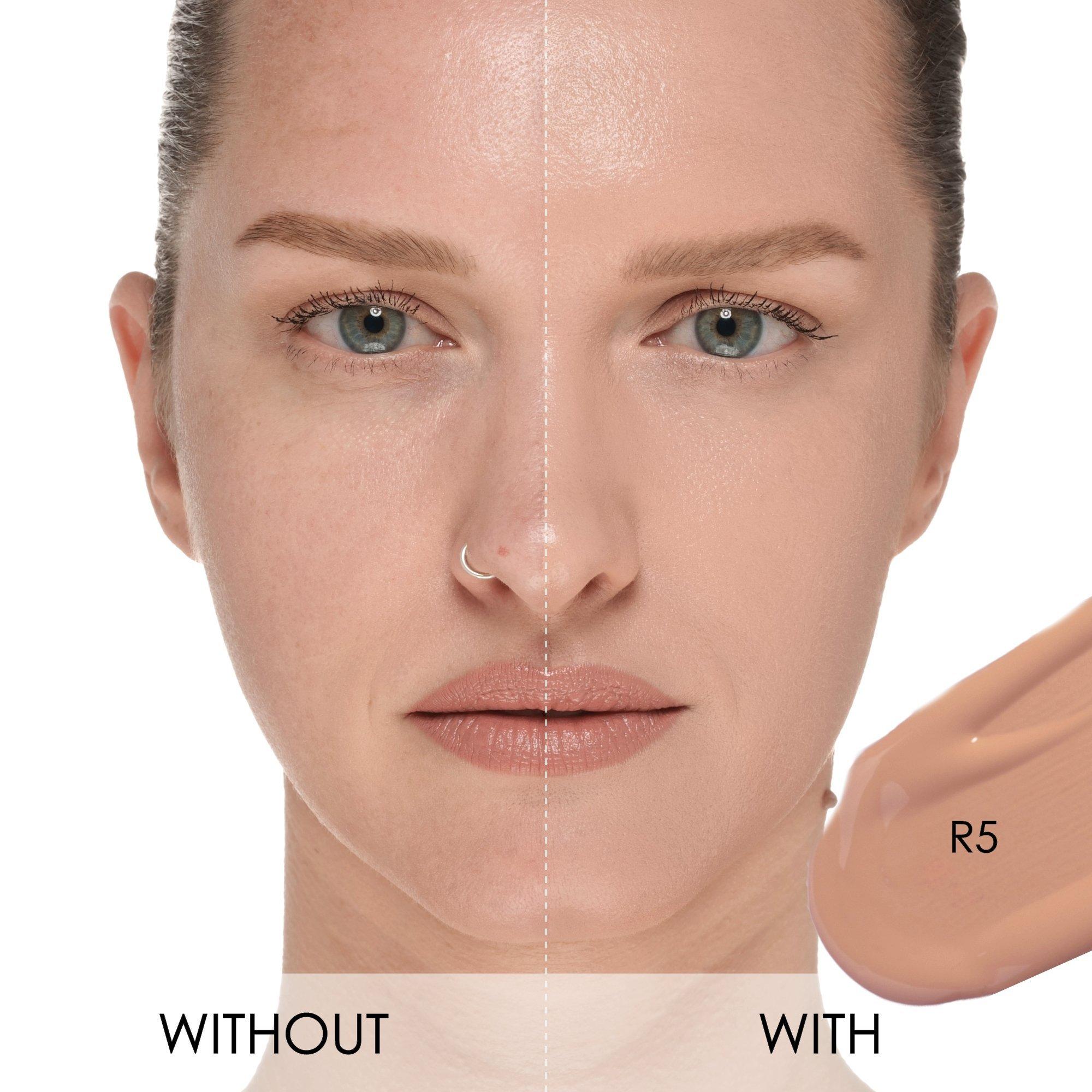 Shade R5: Water (Aqua), Titanium Dioxide (CI 77891), Bis-Stearyl Dimethicone, Caprylyl Methicone, Isohexadecane, Cetyl PEG/PPG-10/1 Dimethicone, Glycerin, Isononyl Isononanoate, Diphenyl Dimethicone, Iron Oxides (CI 77492), Polyglyceryl-4 Isostearate, Trimethylsiloxysilicate, C30-45 Alkyl Dimethicone, Stearyl Dimethicone, Alumina, Butylene Glycol, Boron Nitride, Iron Oxides (CI 77491), Sodium Potassium Aluminum Silicate, Phenoxyethanol, Sodium Chloride, Disteardimonium Hectorite, Iron Oxides (CI 77499), Potassium Sorbate, Sodium Dehydroacetate, Caprylic/Capric Triglyceride, Triethoxycaprylylsilane, Tocopheryl Acetate, Silica Dimethyl Silylate, C20-24 Olefin, Silica, Propylene Carbonate, Fragrance (Parfum), Vitis Vinifera (Grape) Fruit Extract \\[Vitis Vinifera Fruit Extract\\], Portulaca Grandiflora Extract, Capsicum Annuum Extract, Pentaerythrityl Tetra-Di-T-Butyl Hydroxyhydrocinnamate.