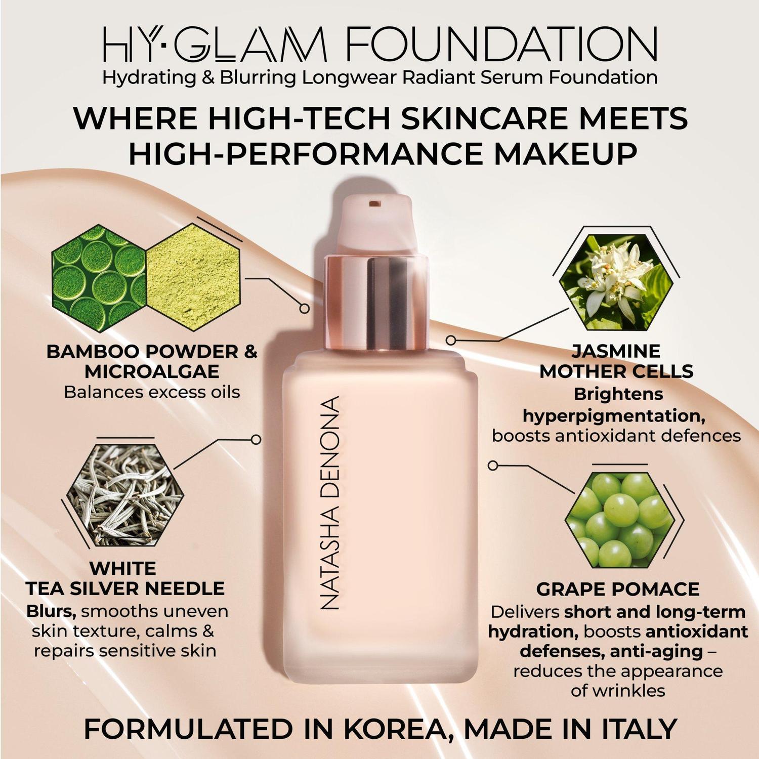 ДОПОЛНИТЕЛЬНО: Нанесите пудру для ультраматового сияющего финиша. Благодаря своей самофиксирующейся формуле, тональный крем HY-GLAM обеспечивает безупречный, идеальный естественный финиш кожи, даже при использовании в одиночку.