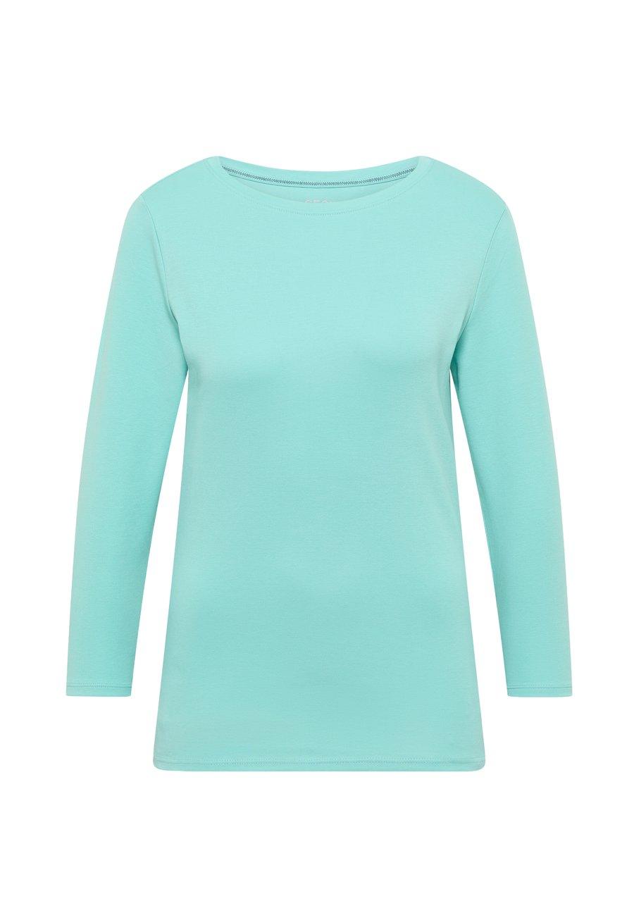 Базовая, но модная вещь! Женская повседневная рубашка от CECIL в базовом стиле. Однотонный цвет и рукава 3/4 делают ее классикой в гардеробе. Вырез-лодочка дополняет свободный крой. Вырез: КруглыйМатериал и уход