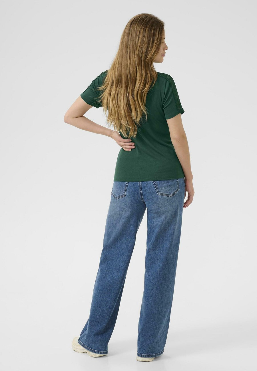 Эта женская футболка имеет удобный стандартный крой, изящную кружевную отделку по линии горловины и короткие рукава. Классический силуэт обеспечивает универсальность в ношении как на каждый день, так и в неформальной обстановке. Вырез горловины: КруглыйМатериал и уход