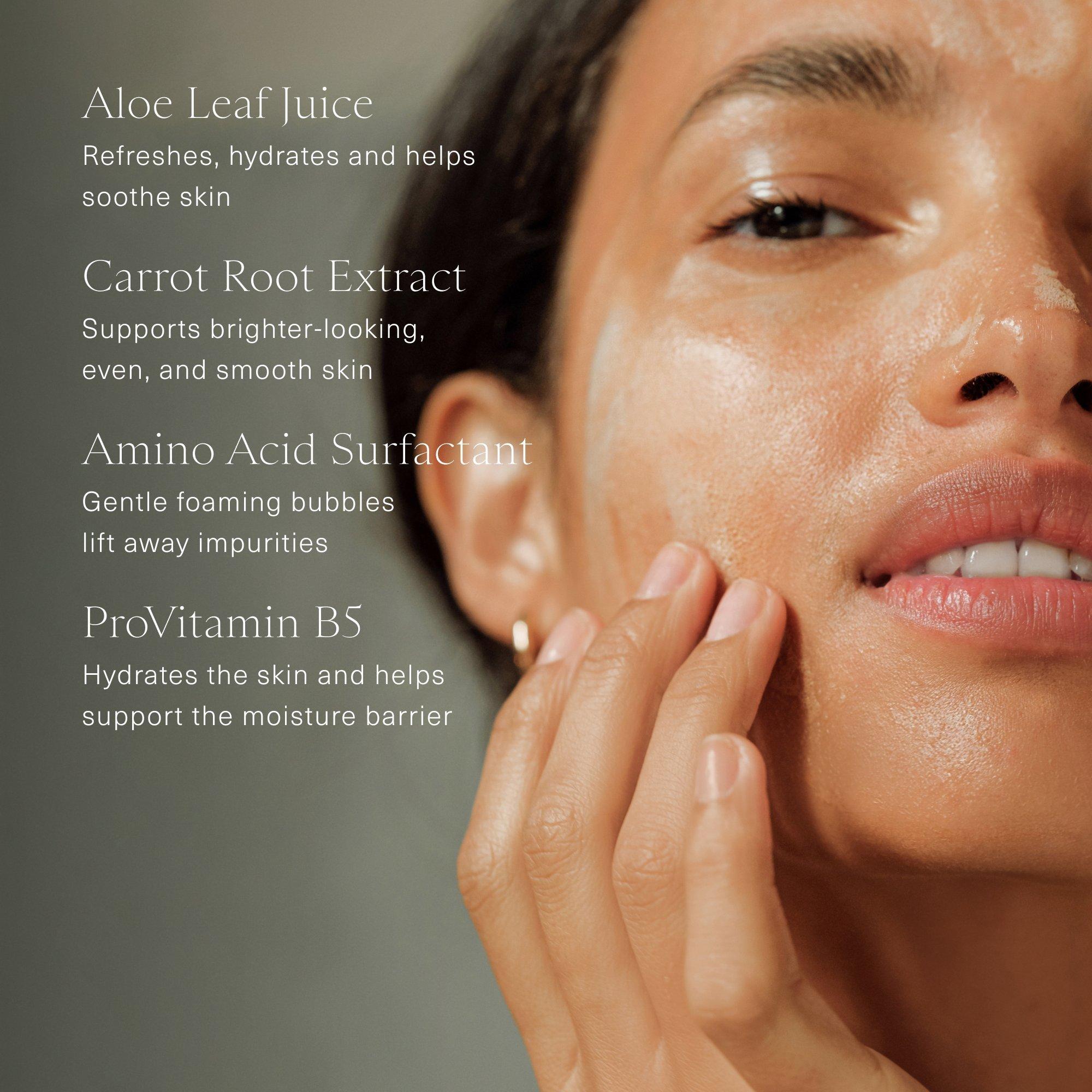 Используйте утром и вечером ежедневно. Нанесите 2-3 нажатия дозатора на влажную кожу и помассируйте круговыми движениями.Ингредиенты