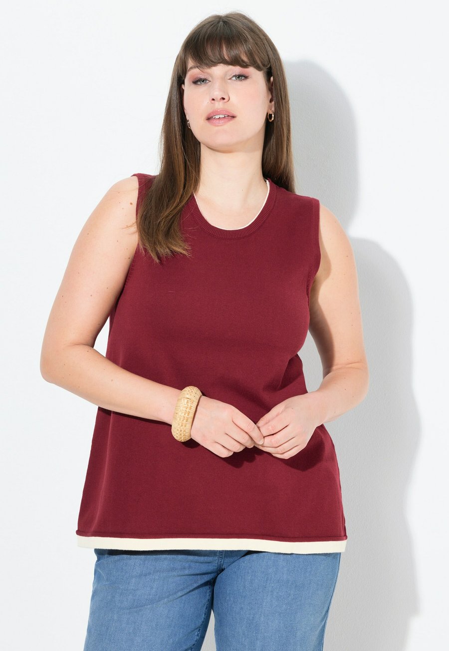 Топ Ulla Popken CONTRAST TRIM TANK, Dark Cherry Red/Red