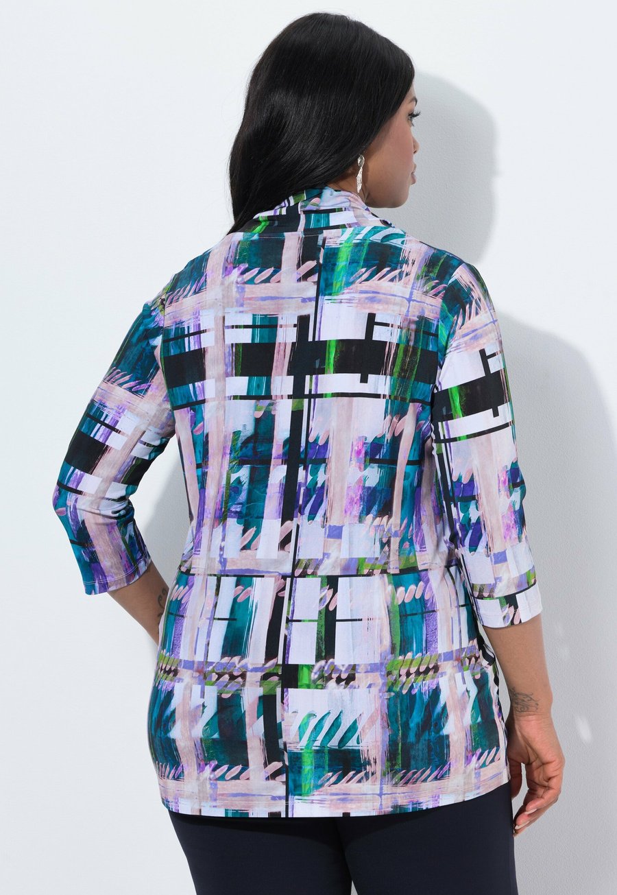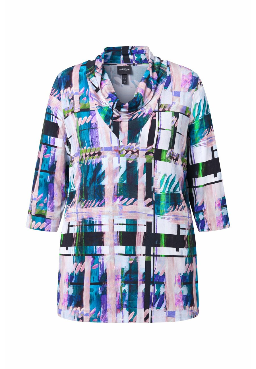 Топ Ulla Popken CHECKED WATERFALL NECKLINE 3/4 SLEEVE SLINKY , Deep Green/Green