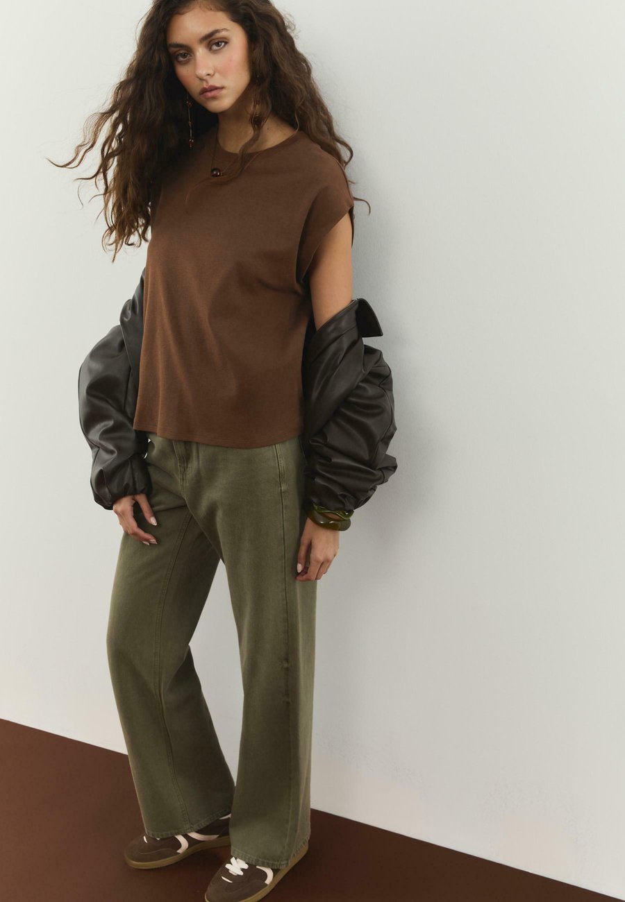 Футболка Stradivarius Basic T-shirt, Dark Brown