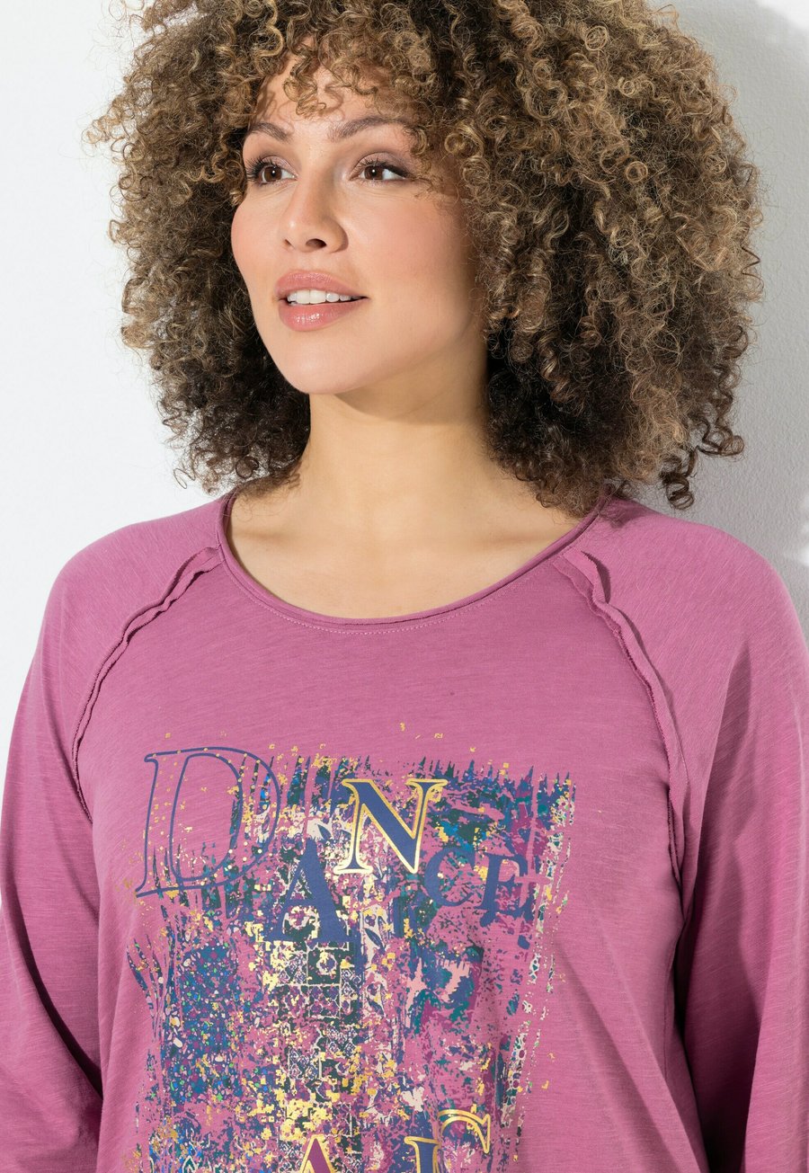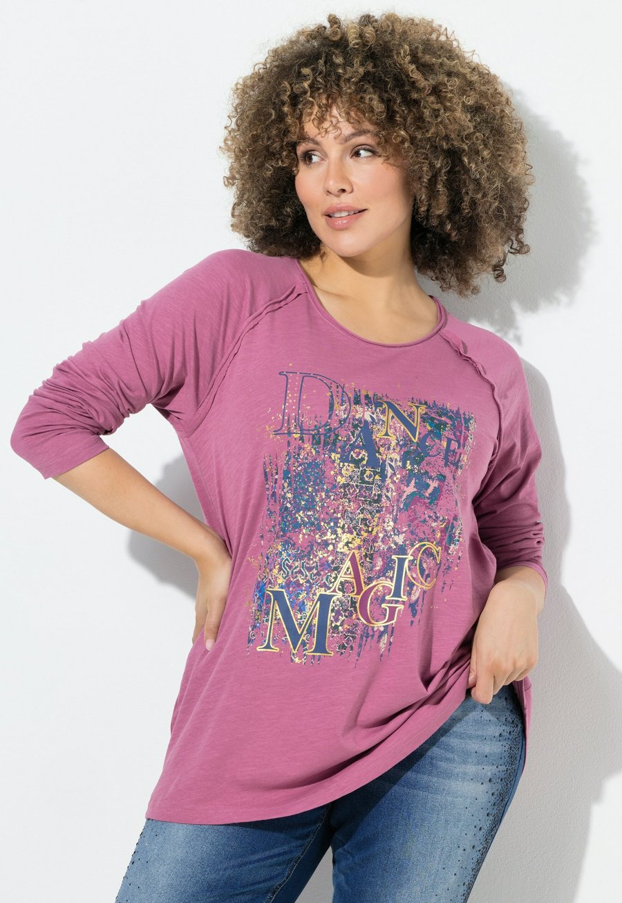 Топ Ulla Popken INVERTED SEAM LONG SLEEVE GRAPHIC, Dark Rose/Light Pink