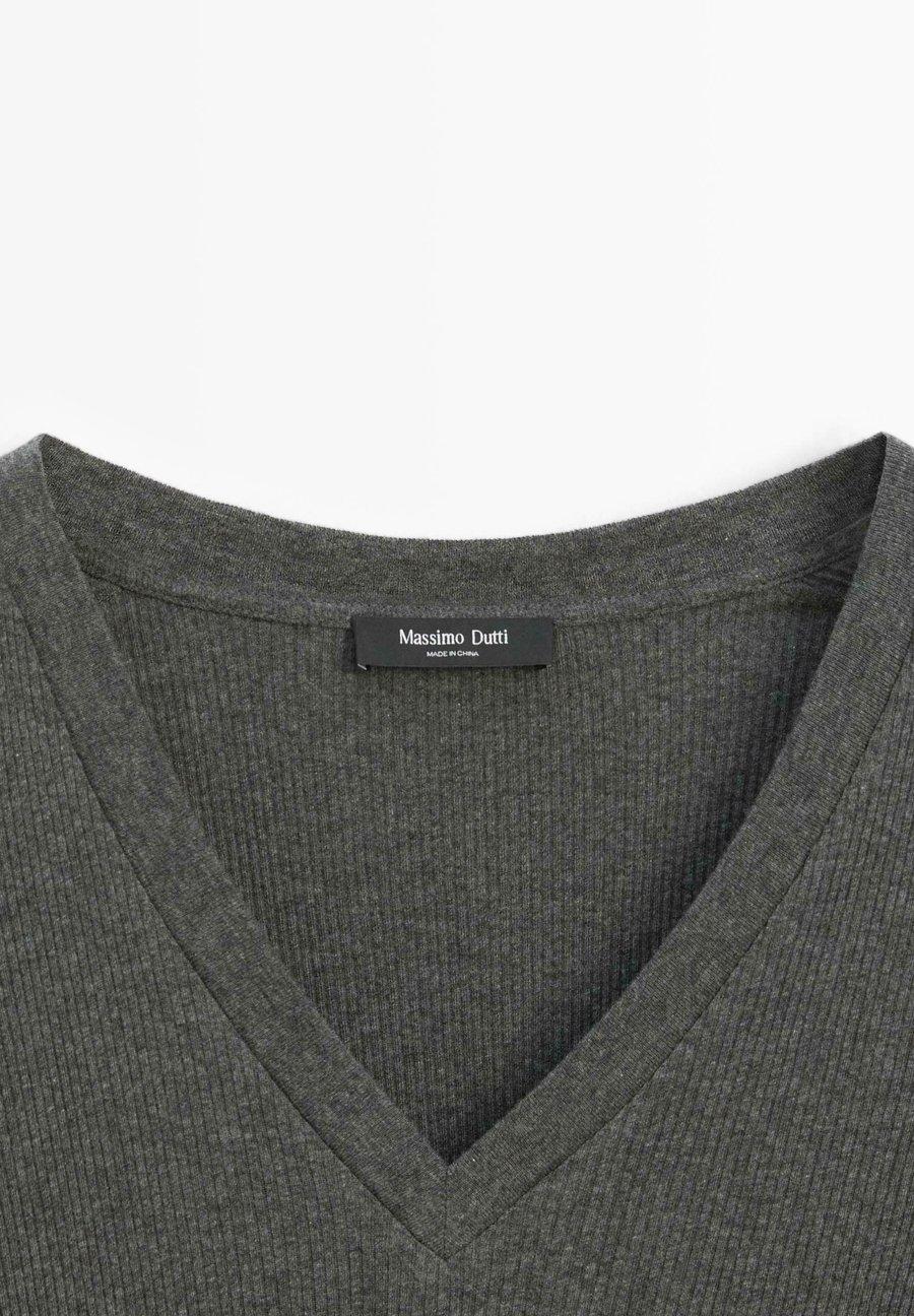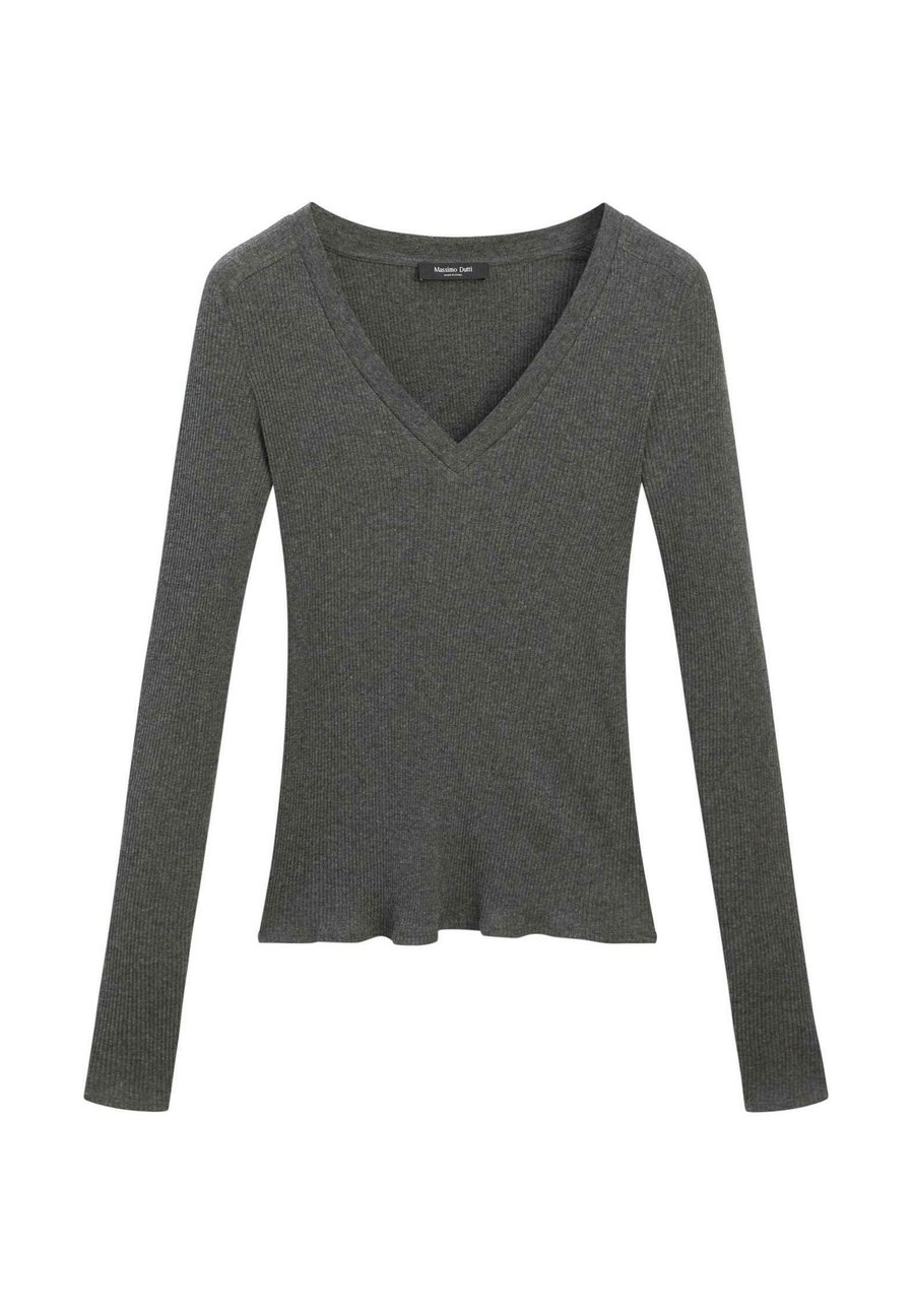 V-образный вырез. Слегка приталенный силуэт, создающий более четкий и стройный силуэт. Длинные рукава. Футболка из смесовой хлопковой ткани. Вырез: V-образныйМатериал и уход