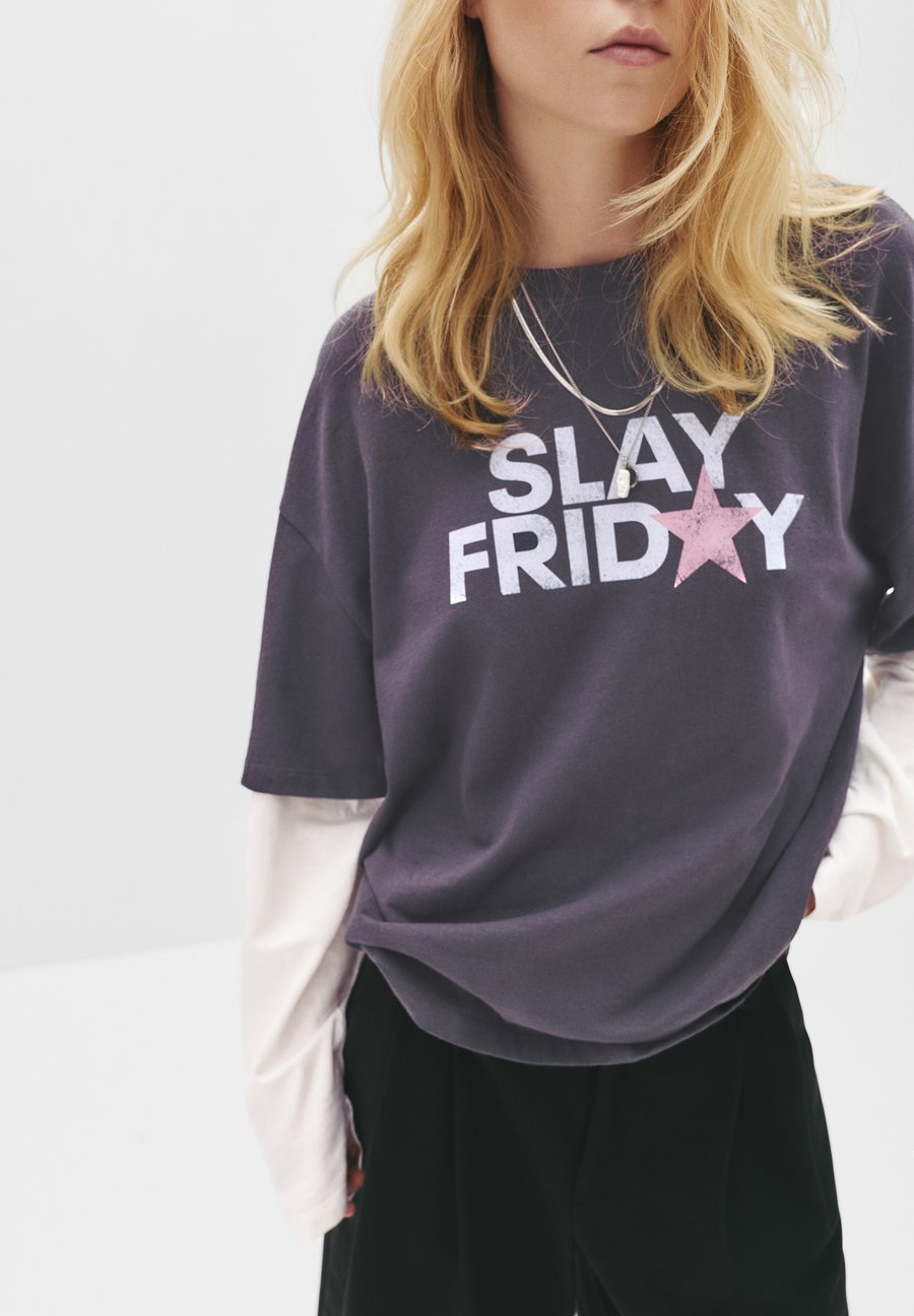 Топ PULL&BEAR DOUBLE-SLEEVE WITH SLOGAN, Dark Grey