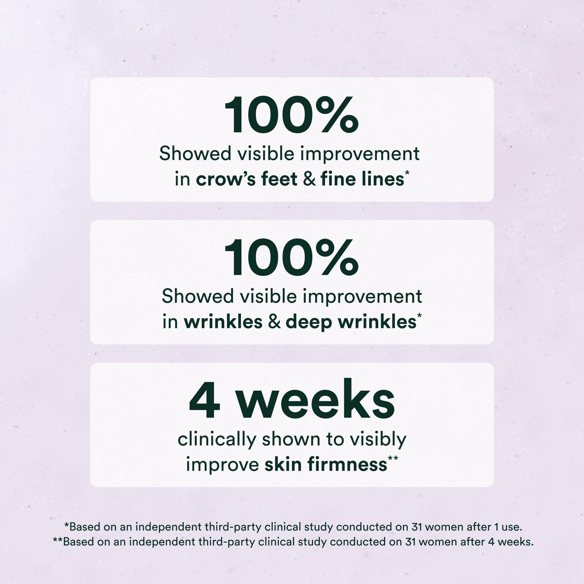 - 100% отметили видимое улучшение состояния кожи вокруг глаз и мелких морщин*