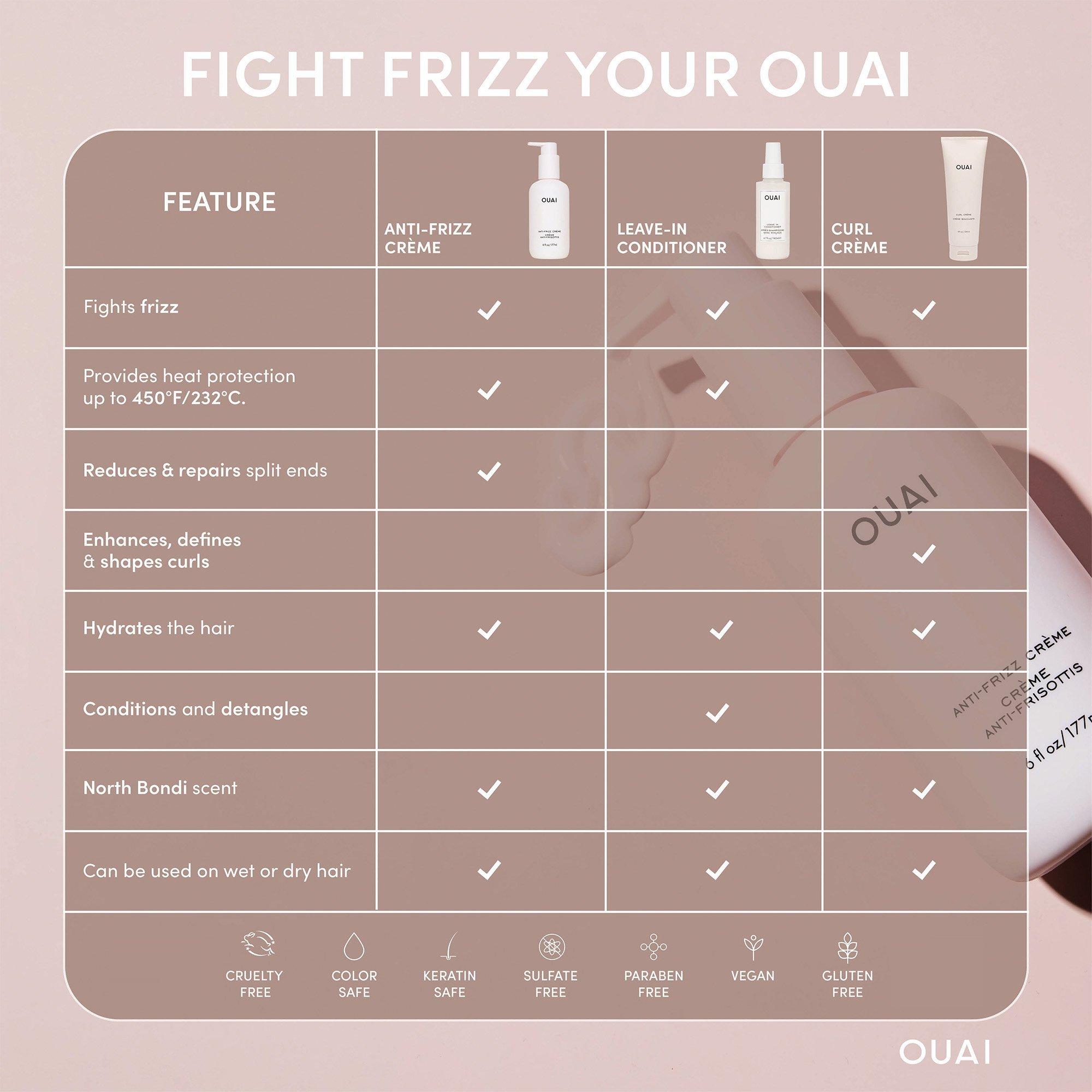 - Наносите, начиная с кончиков волос. Именно здесь волосы обычно более сухие и склонны к пушистости. Аккуратно распределите крем OUAI по кончикам и к середине длины и корням. Сосредоточьтесь на участках, где пушистость наиболее выражена, таких как макушка или область вокруг лица.