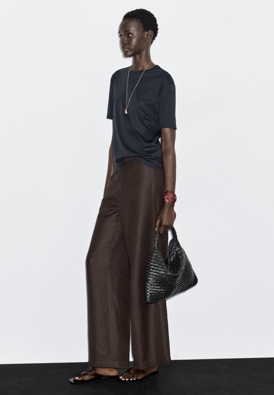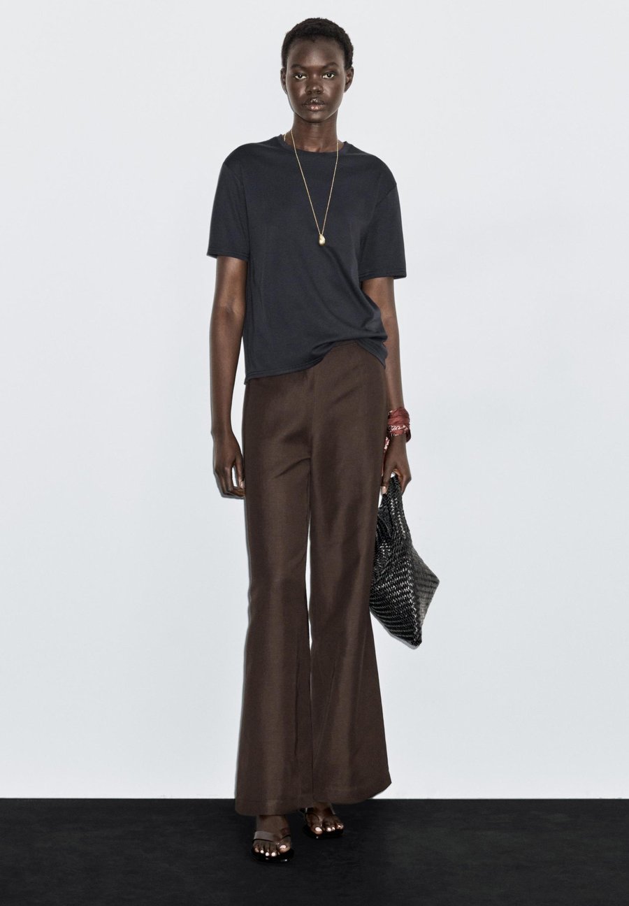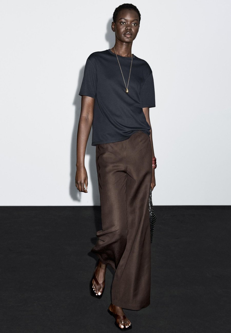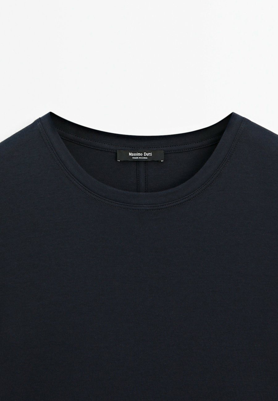 Футболка из 100% хлопка. Короткие рукава. Ребристая отделка. Круглый вырез. Деталь в виде центрального шва на спине. Вырез: Круглый вырезМатериал и уход