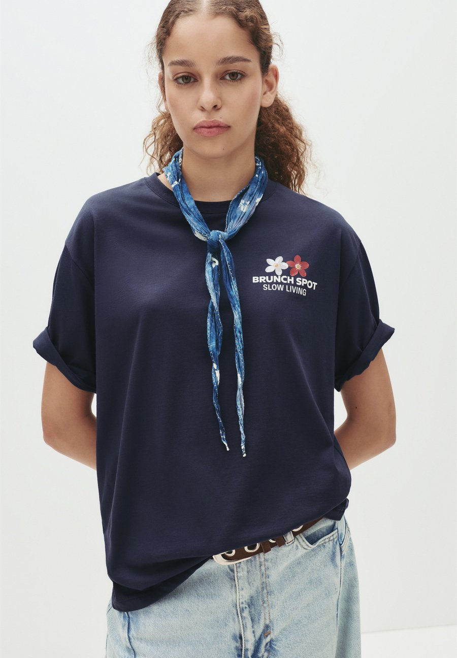 Футболка PULL&BEAR Print T-shirt, Dark Blue