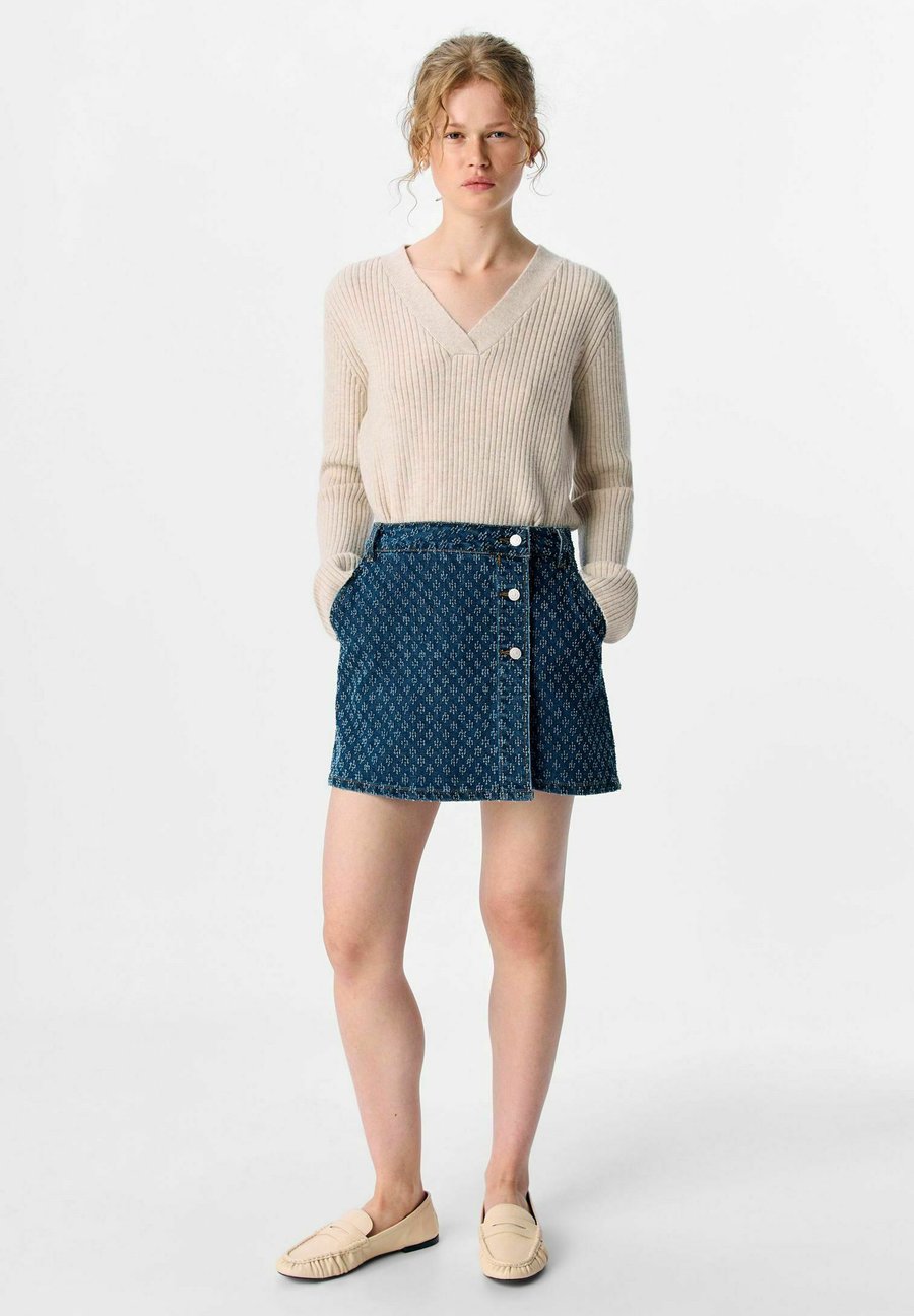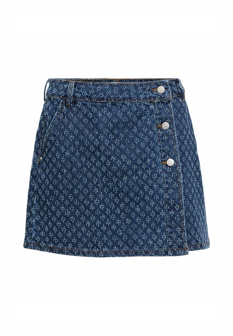 - Джинсовая мини-юбка- Часть комплекта- Жаккардовый узор по всей поверхности- Средняя талия с петлями для пояса- Запах с застежкой на пуговицу-заклепку сбоку- Жакроновая нашивка- Один боковой карман- Стандартный крой- Модель носит размер 36Название модели: OBJLUNAЗастежка: ПуговицаМатериал и уход