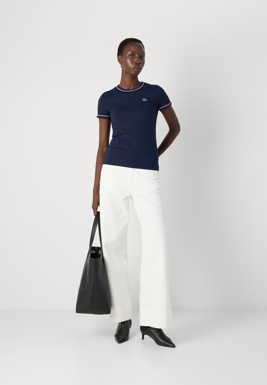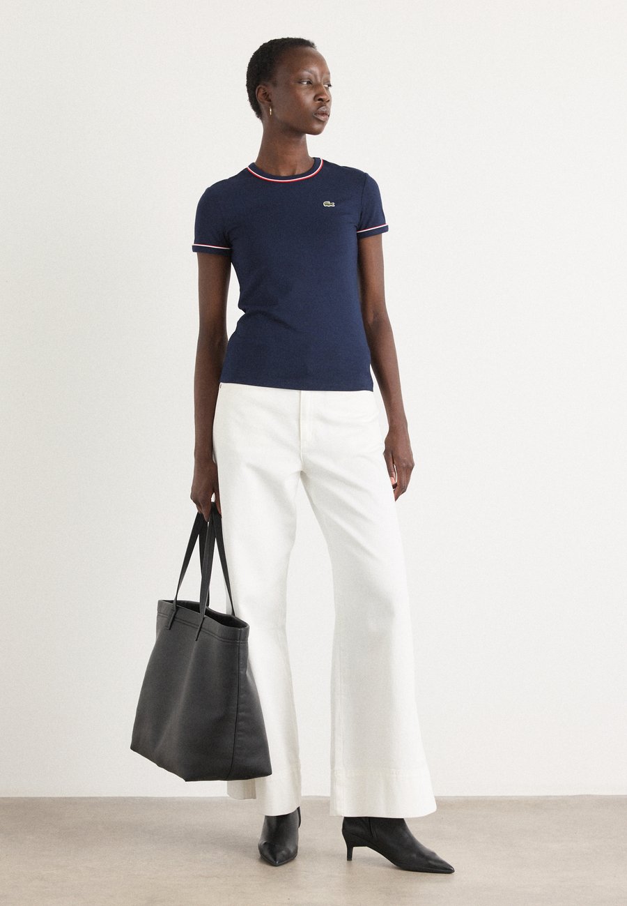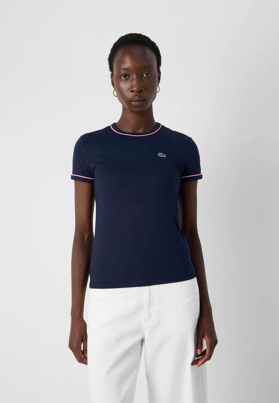 Элегантная футболка из эластичного хлопкового трикотажа с контрастной отделкой и вышитым крокодилом. Детали с ребристой отделкой. Вырез горловины: круглыйМатериал и уход