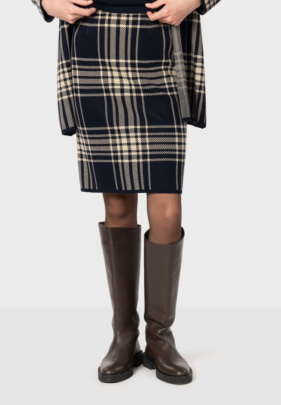 Юбка из жаккардового трикотажа с клетчатым узором. Эластичный пояс обеспечивает комфорт, не жертвуя при этом элегантностью - идеально подходит для офисных образов или торжественных случаев. Дизайн, отделка, сборка, стежка и ткачество: Испания. Узор: Клетка. Детали: Эластичный пояс. Материал и уход: 68% вискоза, 29% акрил, 3% эластан. Трикотаж: трикотаж. Инструкции по уходу: только ручная стирка. Размер и посадка: рост модели 177 см, размер 42. Посадка: облегающая. Форма: прямая. Длина: короткая. Общая длина: 56,5 см (размер 36).Доставка товаров осуществляется курьером или на пункт выдачи заказов.