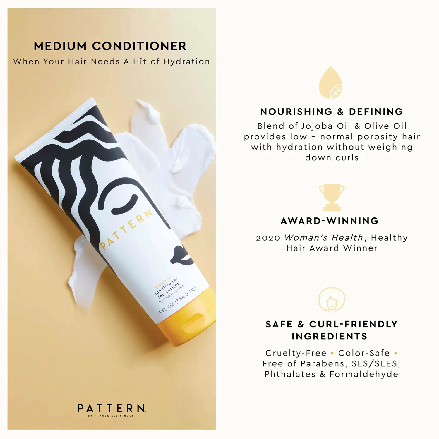Нанесите на влажные волосы от корней до кончиков. Для очень густых локонов или длинных волос разделите их на пряди с помощью заколки PATTERN во время использования кондиционера, чтобы каждая прядь получила необходимый уход. Используйте щетку для душа PATTERN или пальцы, чтобы распутать волосы и собрать локоны.Ингредиенты