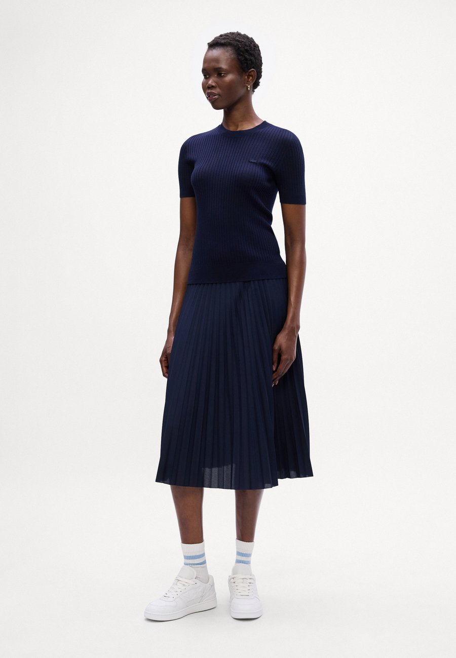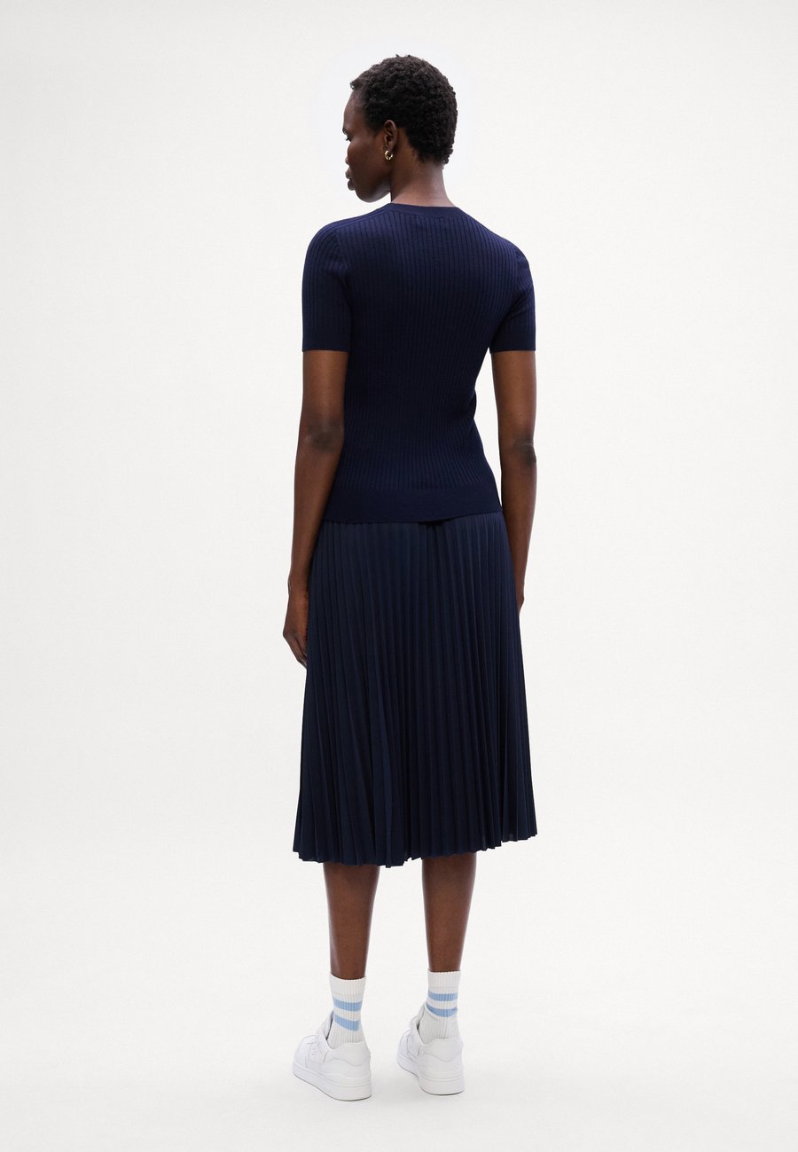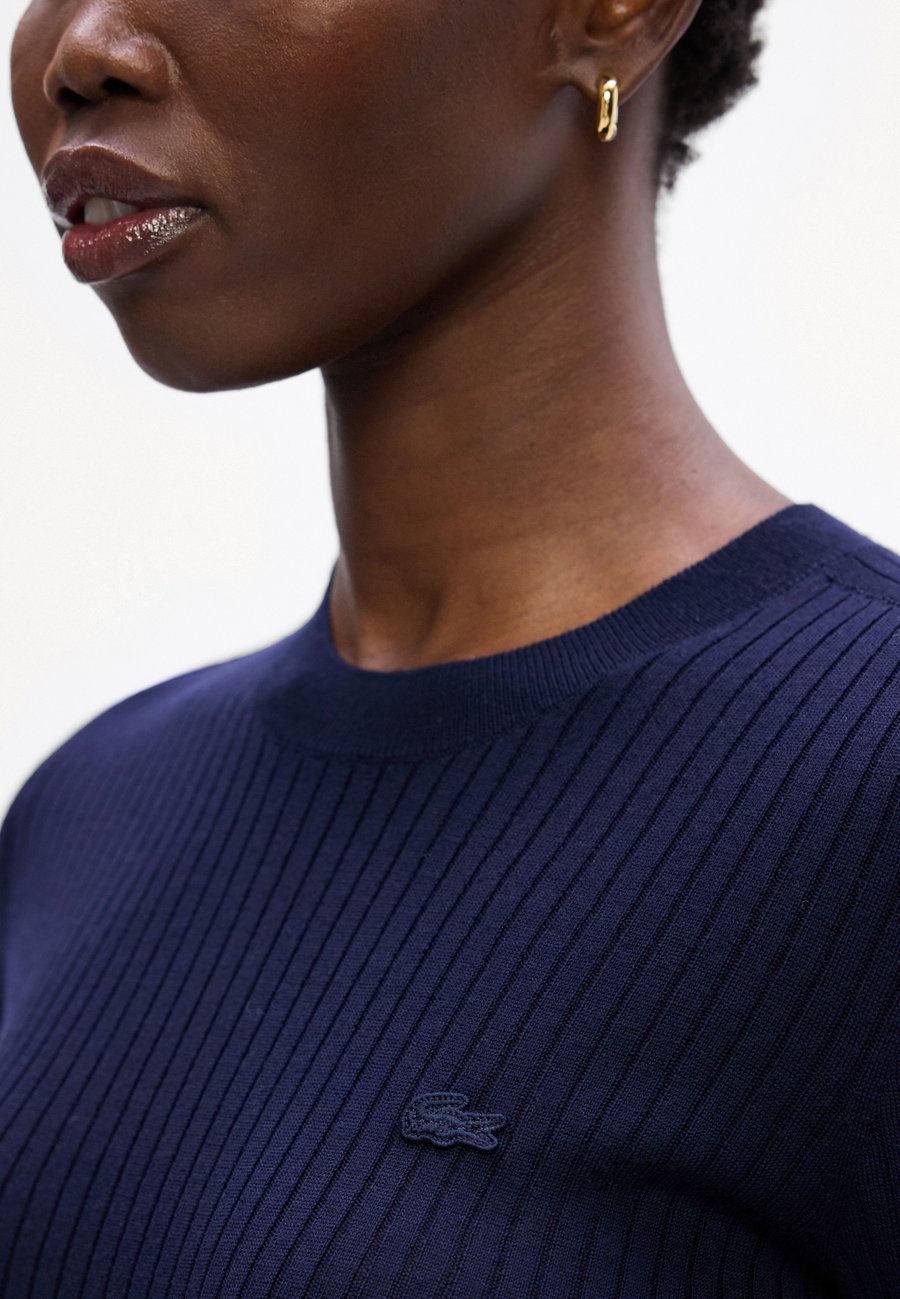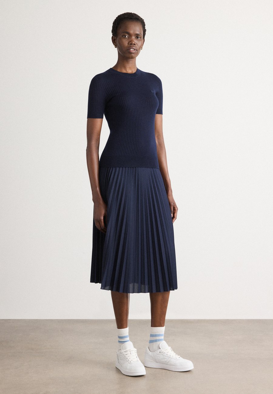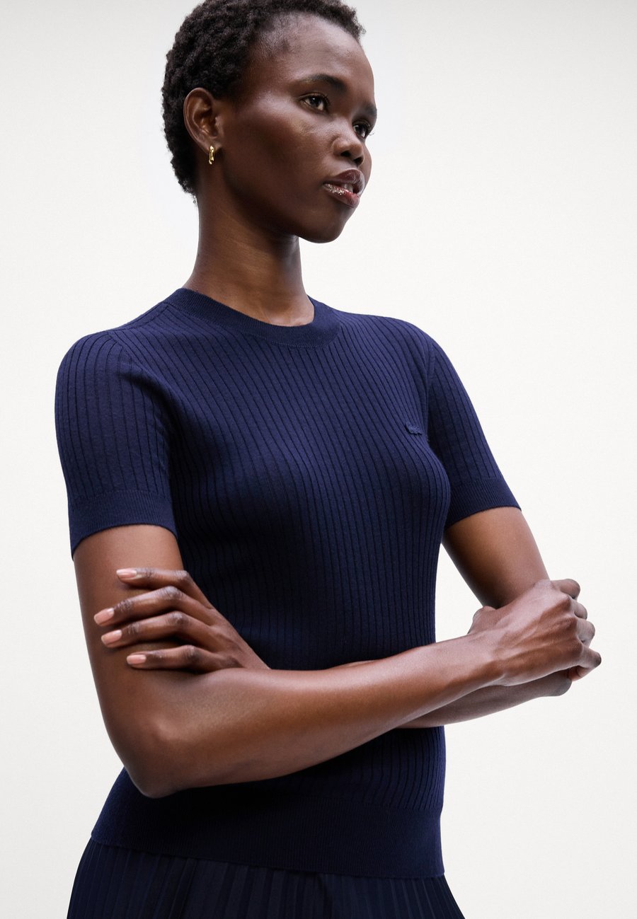 Свитер из мериносовой шерсти с короткими рукавами, ребристой вязкой, бесшовным 3D-дизайном, элегантным стилем и премиальными деталями. Вырез горловины: круглый.Материал и уход