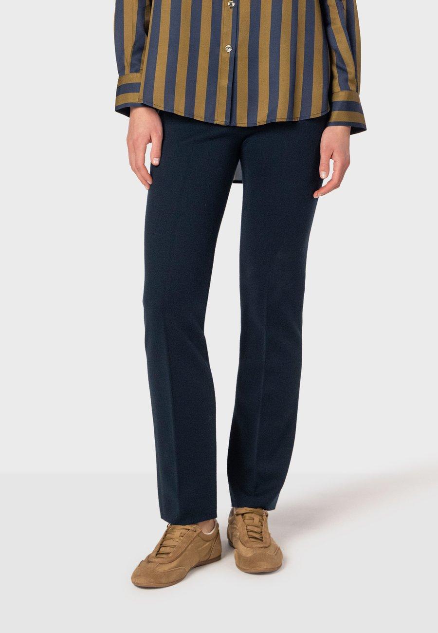 Брюки, сочетающие в себе изысканный крой и удобство трикотажа, идеально подходят для долгих дней встреч или деловых переговоров. Прямой крой и высокая талия, эластичный пояс обеспечивают комфортную и привлекательную посадку. Универсальный элемент гардероба. Также доступны в других цветах. Дизайн, отделка, сборка, стежка и ткачество: Испания. Посадка: Высокая.Материал и уход