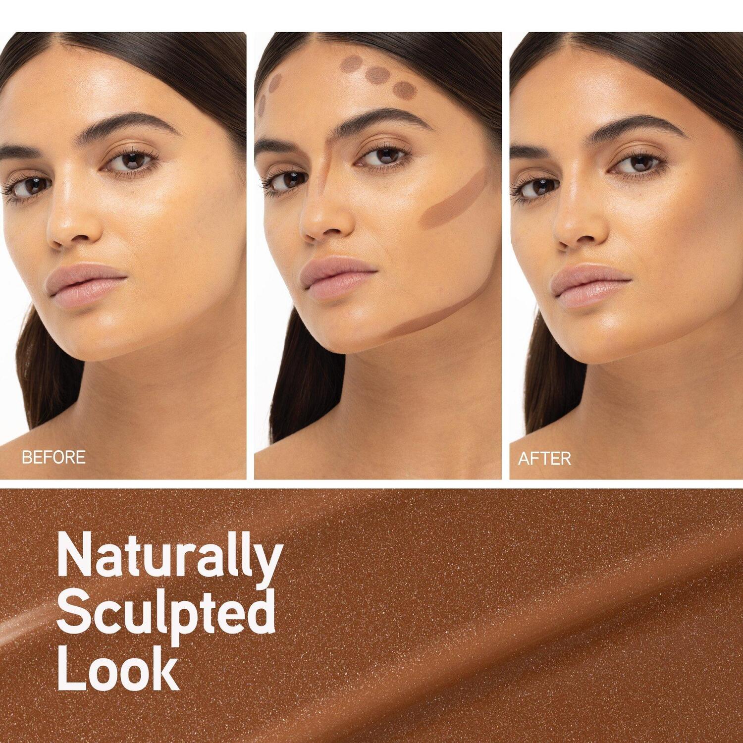 Поверните, чтобы разблокировать, и слегка сожмите, пока средство не выдавится на подушечку. Нанесите на линию роста волос, впадины щек, боковые стороны носа и линию челюсти. Растушуйте для естественного скульптурного вида. Поверните, чтобы зафиксировать.Ингредиенты
