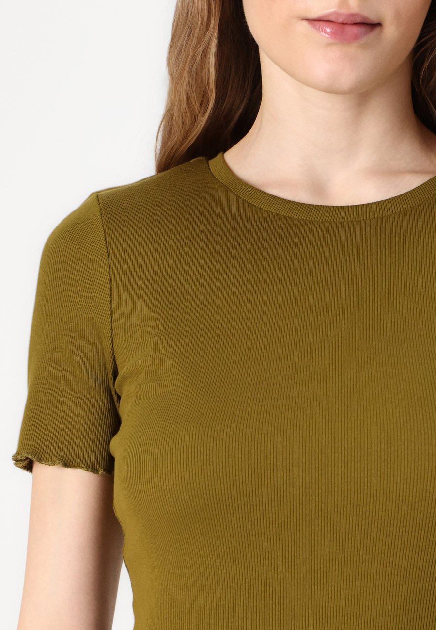 Облегающая футболка с фестончатым краем. Изготовлено из ребристой ткани с небольшим содержанием эластичности для комфортной посадки. Вырез горловины: круглый.Материал и уход
