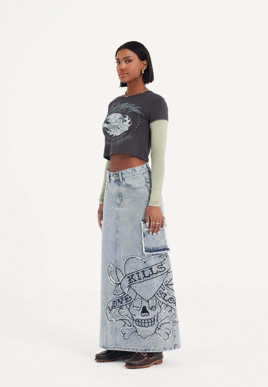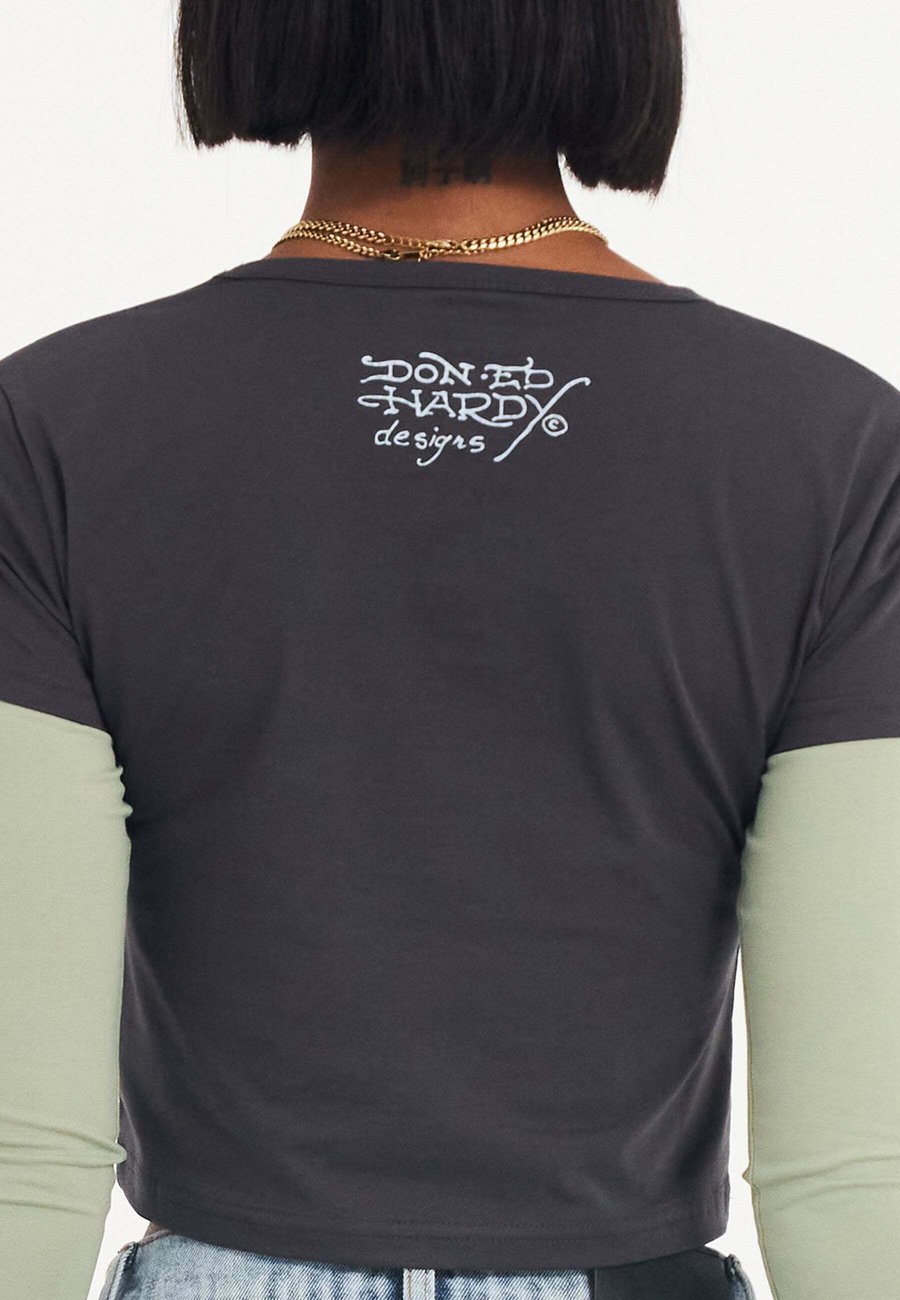 Топ Ed Hardy HELLCAT DOUBLE DIAMANTE , Charcoal Green/Dark Grey